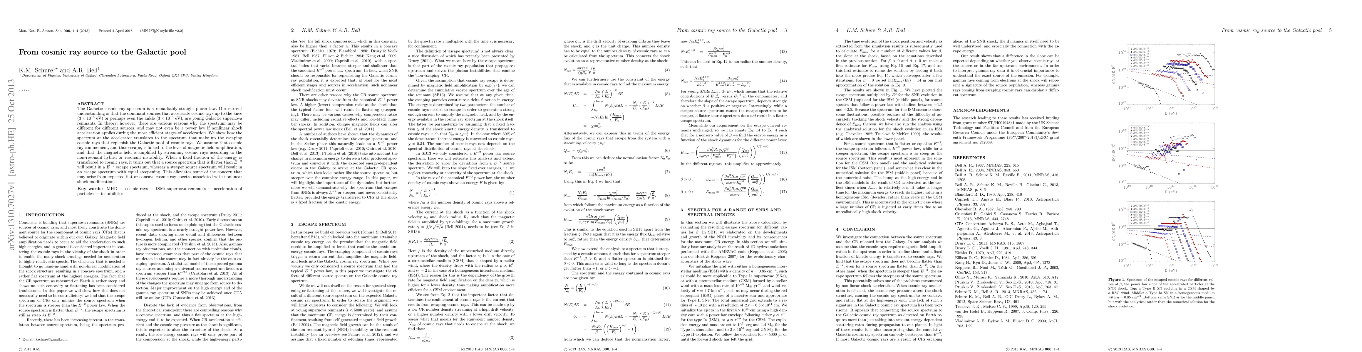 The Galactic cosmic ray spectrum is a straight power law, but its shape may vary depending on the source of acceleration. Researchers found that a flatter source spectrum can result in an escape spectrum with equal steepening, alleviating concerns about flat or concave spectra.