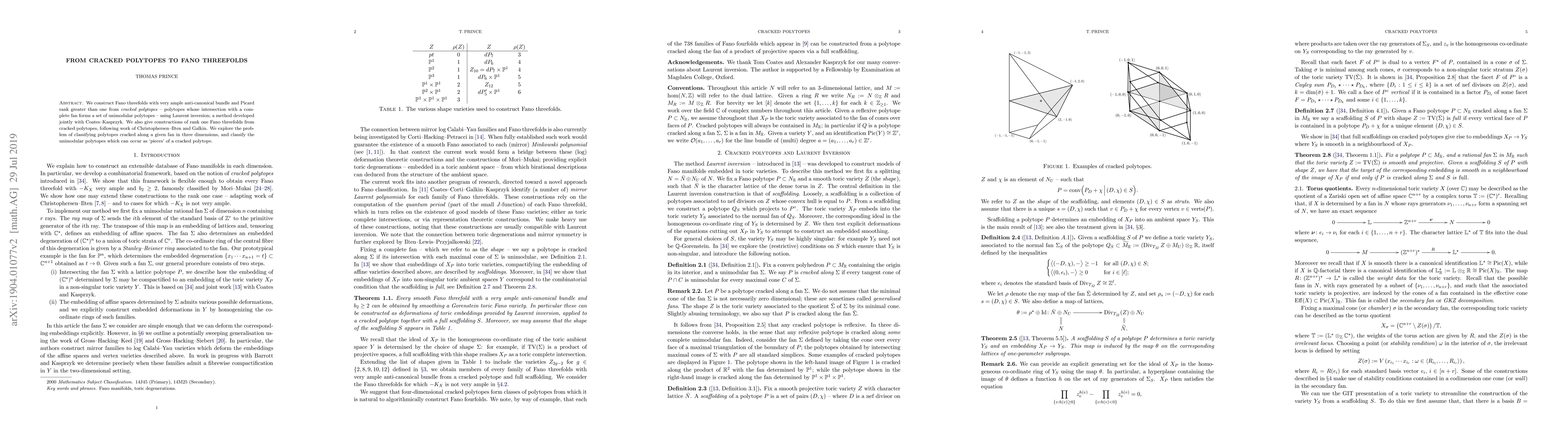 We construct Fano threefolds with very ample anti-canonical bundle and Picard rank greater than one from cracked polytopes - polytopes whose intersection with a complete fan forms a set of unimodular polytopes - using Laurent inversion; a method developed jointly with Coates-Kasprzyk. We also give constructions of rank one Fano threefolds from cracked polytopes, following work of Christophersen-Ilten and Galkin. We explore the problem of classifying polytopes cracked along a given fan in three dimensions, and classify the unimodular polytopes which can occur as 'pieces' of a cracked polytope.