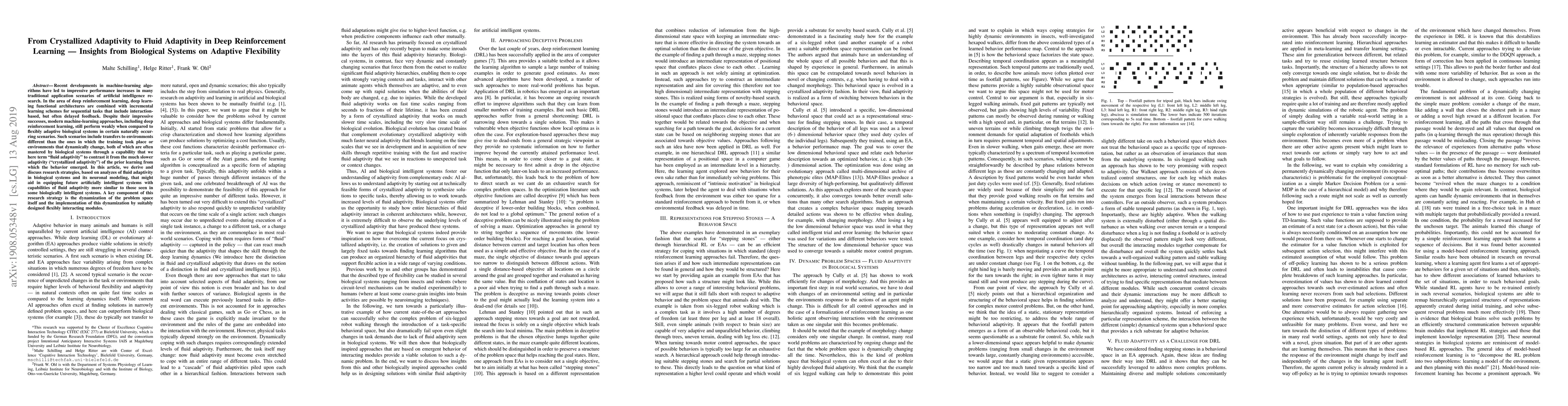 Recent developments in machine-learning algorithms have led to impressive performance increases in many traditional application scenarios of artificial intelligence research. In the area of deep reinforcement learning, deep learning functional architectures are combined with incremental learning schemes for sequential tasks that include interaction-based, but often delayed feedback. Despite their impressive successes, modern machine-learning approaches, including deep reinforcement learning, still perform weakly when compared to flexibly adaptive biological systems in certain naturally occurring scenarios. Such scenarios include transfers to environments different than the ones in which the training took place or environments that dynamically change, both of which are often mastered by biological systems through a capability that we here term "fluid adaptivity" to contrast it from the much slower adaptivity ("crystallized adaptivity") of the prior learning from which the behavior emerged. In this article, we derive and discuss research strategies, based on analyzes of fluid adaptivity in biological systems and its neuronal modeling, that might aid in equipping future artificially intelligent systems with capabilities of fluid adaptivity more similar to those seen in some biologically intelligent systems. A key component of this research strategy is the dynamization of the problem space itself and the implementation of this dynamization by suitably designed flexibly interacting modules.