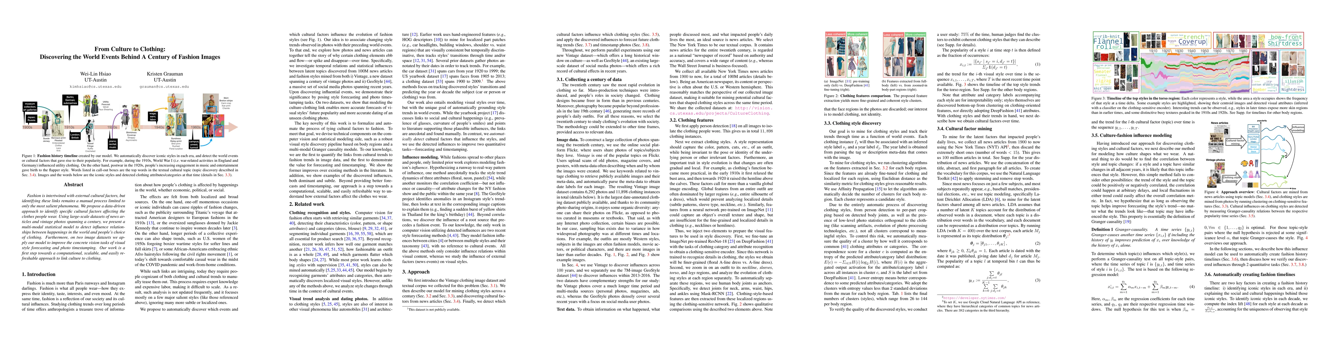 Fashion is intertwined with external cultural factors, but identifying these links remains a manual process limited to only the most salient phenomena. We propose a data-driven approach to identify specific cultural factors affecting the clothes people wear. Using large-scale datasets of news articles and vintage photos spanning a century, we present a multi-modal statistical model to detect influence relationships between happenings in the world and people's choice of clothing. Furthermore, on two image datasets we apply our model to improve the concrete vision tasks of visual style forecasting and photo timestamping. Our work is a first step towards a computational, scalable, and easily refreshable approach to link culture to clothing.