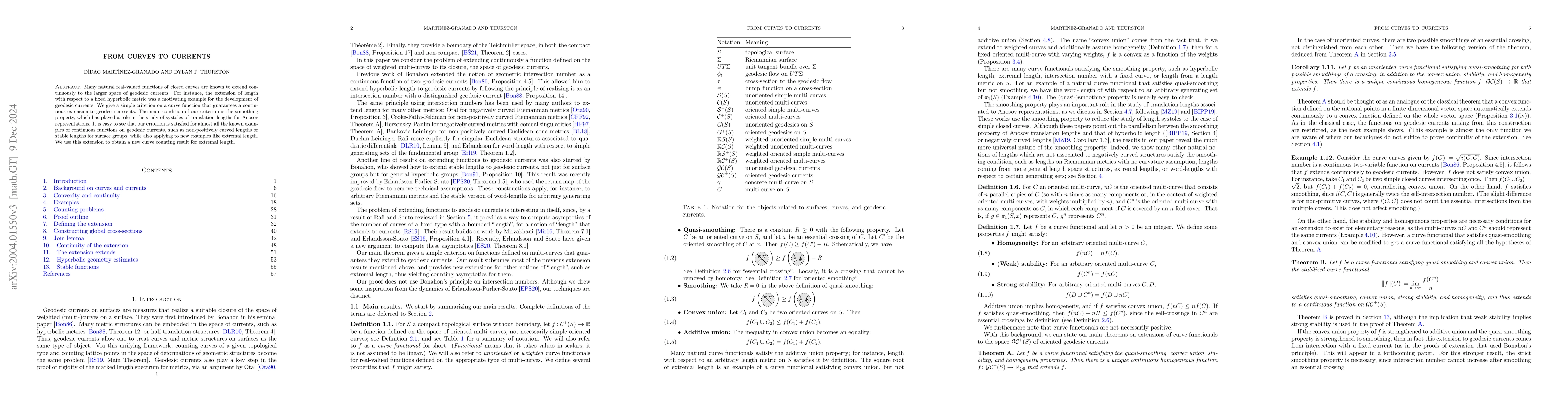 Many natural real-valued functions of closed curves are known to extend continuously to the larger space of geodesic currents. For instance, the extension of length with respect to a fixed hyperbolic metric was a motivating example for the development of geodesic currents. We give a simple criterion on a curve function that guarantees a continuous extension to geodesic currents. The main condition of our criterion is the smoothing property, which has played a role in the study of systoles of translation lengths for Anosov representations. It is easy to see that our criterion is satisfied for almost all the known examples of continuous functions on geodesic currents, such as non-positively curved lengths or stable lengths for surface groups, while also applying to new examples like extremal length. We use this extension to obtain a new curve counting result for extremal length.