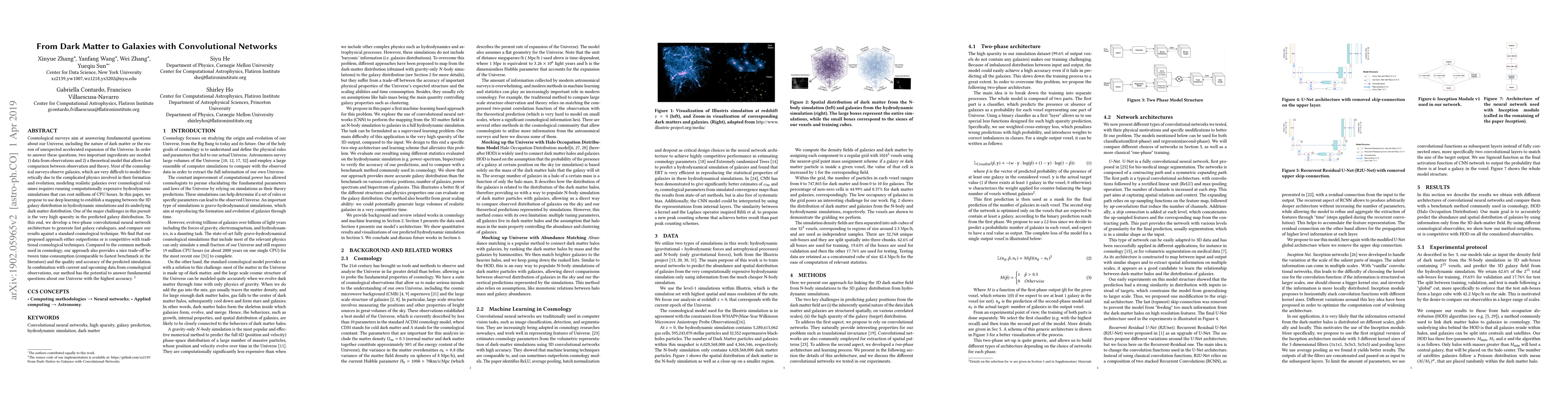 Cosmological surveys aim at answering fundamental questions about our Universe, including the nature of dark matter or the reason of unexpected accelerated expansion of the Universe. In order to answer these questions, two important ingredients are needed: 1) data from observations and 2) a theoretical model that allows fast comparison between observation and theory. Most of the cosmological surveys observe galaxies, which are very difficult to model theoretically due to the complicated physics involved in their formation and evolution; modeling realistic galaxies over cosmological volumes requires running computationally expensive hydrodynamic simulations that can cost millions of CPU hours. In this paper, we propose to use deep learning to establish a mapping between the 3D galaxy distribution in hydrodynamic simulations and its underlying dark matter distribution. One of the major challenges in this pursuit is the very high sparsity in the predicted galaxy distribution. To this end, we develop a two-phase convolutional neural network architecture to generate fast galaxy catalogues, and compare our results against a standard cosmological technique. We find that our proposed approach either outperforms or is competitive with traditional cosmological techniques. Compared to the common methods used in cosmology, our approach also provides a nice trade-off between time-consumption (comparable to fastest benchmark in the literature) and the quality and accuracy of the predicted simulation. In combination with current and upcoming data from cosmological observations, our method has the potential to answer fundamental questions about our Universe with the highest accuracy.