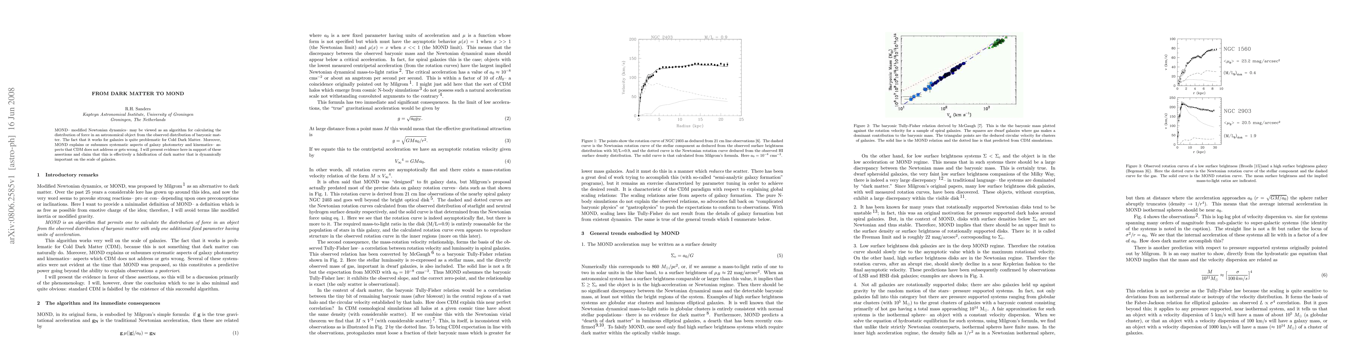 MOND-- modified Newtonian dynamics-- may be viewed as an algorithm for calculating the distribution of force in an astronomical object from the observed distribution of baryonic matter. The fact that it works for galaxies is quite problematic for Cold Dark Matter. Moreover, MOND explains or subsumes systematic aspects of galaxy photometry and kinematics-- aspects that CDM does not address or gets wrong. I will present evidence here in support of these assertions and claim that this is effectively a falsification of dark matter that is dynamically important on the scale of galaxies.