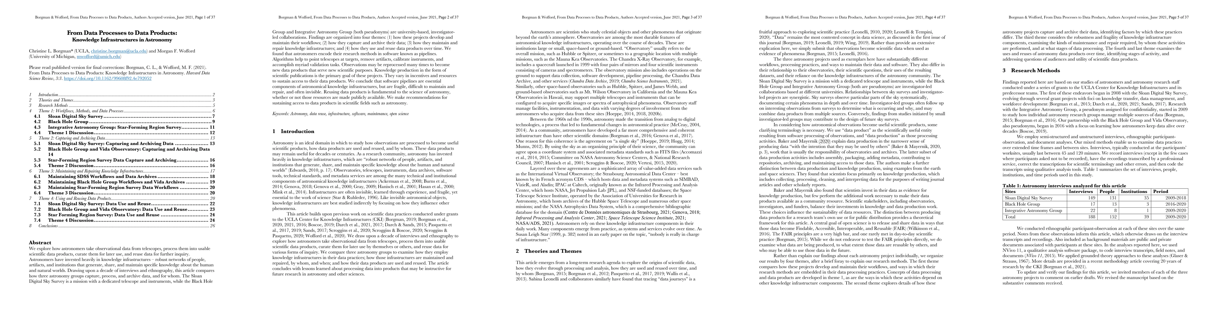 This paper examines how astronomers transform raw observational data into scientific data products through complex knowledge infrastructures, focusing on three groups. It highlights the importance of software pipelines and algorithms in this process, and discusses the challenges in maintaining and reusing these data products. The study recommends strategies to sustain access to astronomical data products.