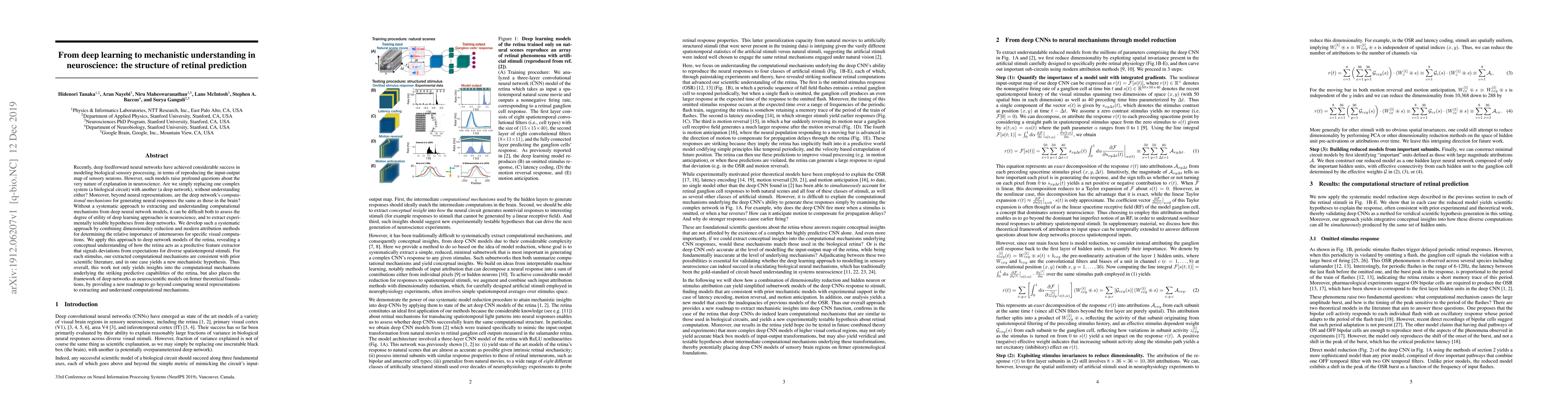 Recently, deep feedforward neural networks have achieved considerable success in modeling biological sensory processing, in terms of reproducing the input-output map of sensory neurons. However, such models raise profound questions about the very nature of explanation in neuroscience. Are we simply replacing one complex system (a biological circuit) with another (a deep network), without understanding either? Moreover, beyond neural representations, are the deep network's computational mechanisms for generating neural responses the same as those in the brain? Without a systematic approach to extracting and understanding computational mechanisms from deep neural network models, it can be difficult both to assess the degree of utility of deep learning approaches in neuroscience, and to extract experimentally testable hypotheses from deep networks. We develop such a systematic approach by combining dimensionality reduction and modern attribution methods for determining the relative importance of interneurons for specific visual computations. We apply this approach to deep network models of the retina, revealing a conceptual understanding of how the retina acts as a predictive feature extractor that signals deviations from expectations for diverse spatiotemporal stimuli. For each stimulus, our extracted computational mechanisms are consistent with prior scientific literature, and in one case yields a new mechanistic hypothesis. Thus overall, this work not only yields insights into the computational mechanisms underlying the striking predictive capabilities of the retina, but also places the framework of deep networks as neuroscientific models on firmer theoretical foundations, by providing a new roadmap to go beyond comparing neural representations to extracting and understand computational mechanisms.