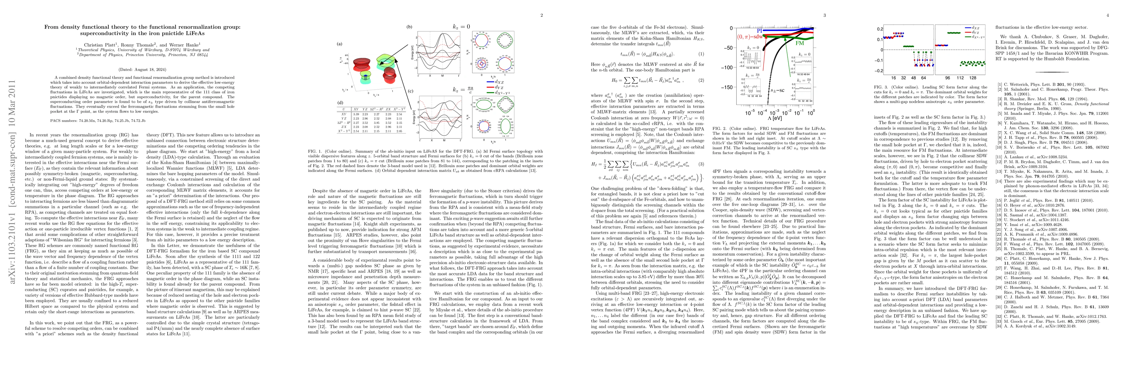A combined density functional theory and functional renormalization group method is introduced which takes into account orbital-dependent interaction parameters to derive the effective low-energy theory of weakly to intermediately correlated Fermi systems. As an application, the competing fluctuations in LiFeAs are investigated, which is the main representative of the 111 class of iron pnictides displaying no magnetic order, but superconductivity, for the parent compound. The superconducting order parameter is found to be of s+- type driven by collinear antiferromagnetic fluctuations. They eventually exceed the ferromagnetic fluctuations stemming from the small hole pocket at the Gamma point, as the system flows to low energies.
