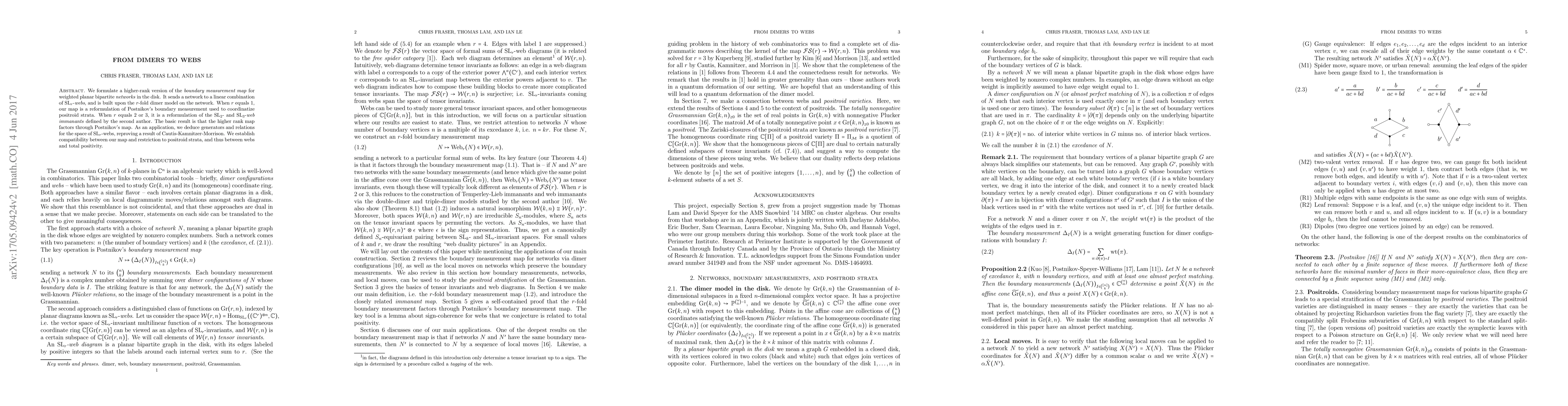 We formulate a higher-rank version of the boundary measurement map for weighted planar bipartite networks in the disk. It sends a network to a linear combination of SL$_r$-webs, and is built upon the r-fold dimer model on the network. When r equals 1, our map is a reformulation of Postnikov's boundary measurement used to coordinatize positroid strata. When r equals 2 or 3, it is a reformulation of the SL$_2$- and SL$_3$-web immanants defined by the second author. The basic result is that the higher rank map factors through Postnikov's map. As an application, we deduce generators and relations for the space of SL$_r$-webs, reproving a result of Cautis-Kamnitzer-Morrison. We establish compatibility between our map and restriction to positroid strata, and thus between webs and total positivity.