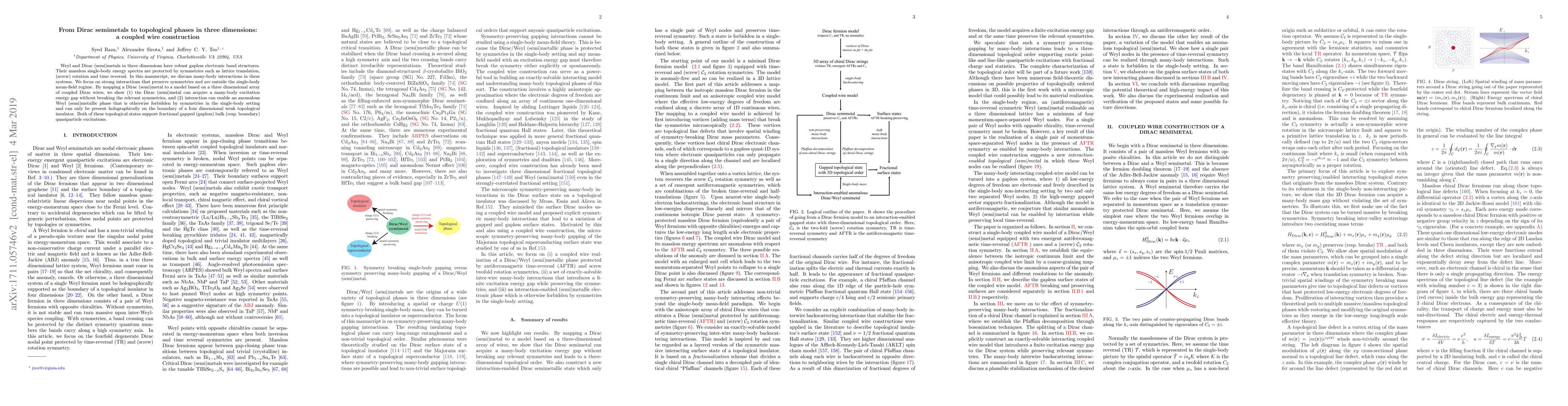 Weyl and Dirac (semi)metals in three dimensions have robust gapless electronic band structures. Their massless single-body energy spectra are protected by symmetries such as lattice translation, (screw) rotation and time reversal. In this manuscript, we discuss many-body interactions in these systems. We focus on strong interactions that preserve symmetries and are outside the single-body mean-field regime. By mapping a Dirac (semi)metal to a model based on a three dimensional array of coupled Dirac wires, we show (1) the Dirac (semi)metal can acquire a many-body excitation energy gap without breaking the relevant symmetries, and (2) interaction can enable an anomalous Weyl (semi)metallic phase that is otherwise forbidden by symmetries in the single-body setting and can only be present holographically on the boundary of a four dimensional weak topological insulator. Both of these topological states support fractional gapped (gapless) bulk (resp. boundary) quasiparticle excitations.