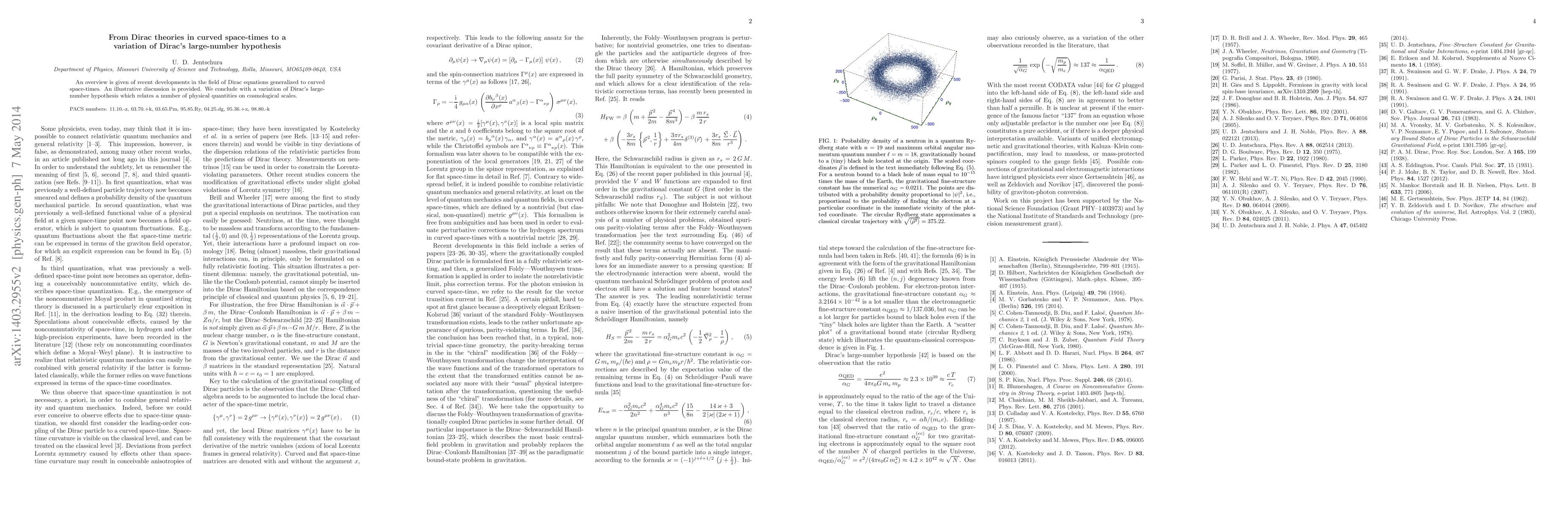 An overview is given of recent developments in the field of Dirac equations generalized to curved space-times. An illustrative discussion is provided. We conclude with a variation of Dirac's large-number hypothesis which relates a number of physical quantities on cosmological scales.