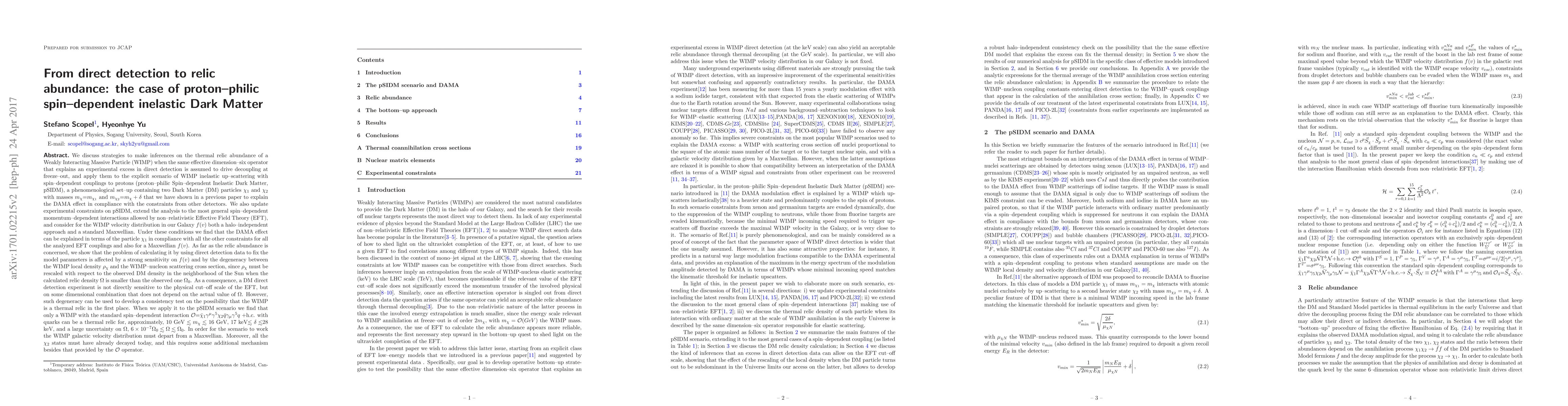 We discuss strategies to make inferences on the thermal relic abundance of a Weakly Interacting Massive Particle (WIMP) when the same effective dimension-six operator that explains an experimental excess in direct detection is assumed to drive decoupling at freeze-out, and apply them to the proton-philic Spin-dependent Inelastic Dark Matter (pSIDM) scenario, a phenomenological set-up containing two states $\chi_1$ and $\chi_2$ with $m_{\chi_2}>m_{\chi_1}$ that we have shown in a previous paper to explain the DAMA effect in compliance with the constraints from other detectors. We update experimental constraints on pSIDM, extend the analysis to the most general spin-dependent momentum-dependent interactions allowed by non-relativistic Effective Field Theory (EFT), and consider for the WIMP velocity distribution in our Galaxy both a halo-independent approach and a standard Maxwellian. The problem of calculating the relic abundance by using direct detection data to fix the model parameters is affected by a strong sensitivity on $f(v)$ and by the degeneracy between the WIMP local density and the WIMP-nucleon scattering cross section. As a consequence, a DM direct detection experiment is not directly sensitive to the physical cut-off scale of the EFT, but on some dimensional combination that does not depend on the actual value of the relic abundance. However, such degeneracy can be used to develop a consistency test on the possibility that the WIMP is a thermal relic in the first place. When we apply it to the pSIDM scenario we find that only a WIMP with a standard spin-dependent interaction ${\cal O}_{spin}$ with quarks can be a thermal relic, for a galactic velocity distribution that departs from a Maxwellian. However all the $\chi_2$ states must have already decayed today, and this requires some additional mechanism besides that provided by the ${\cal O}_{spin}$ operator.