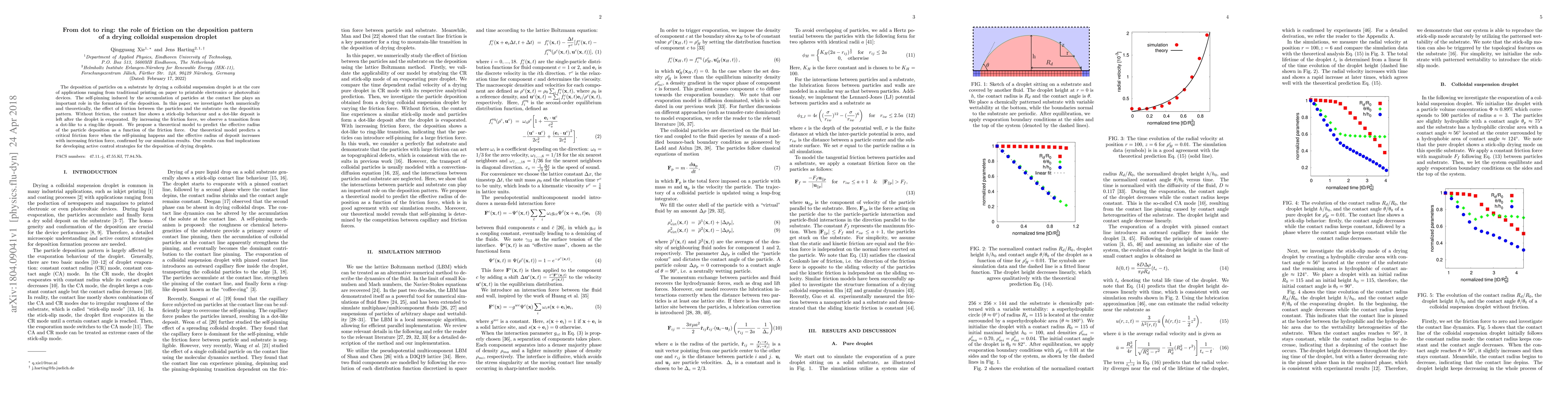This paper investigates how friction influences the deposition pattern of drying colloidal suspension droplets, showing a transition from dot-like to ring-like deposits with increased friction. A theoretical model is proposed to predict the effective radius of the deposit based on friction force, validated by simulations.