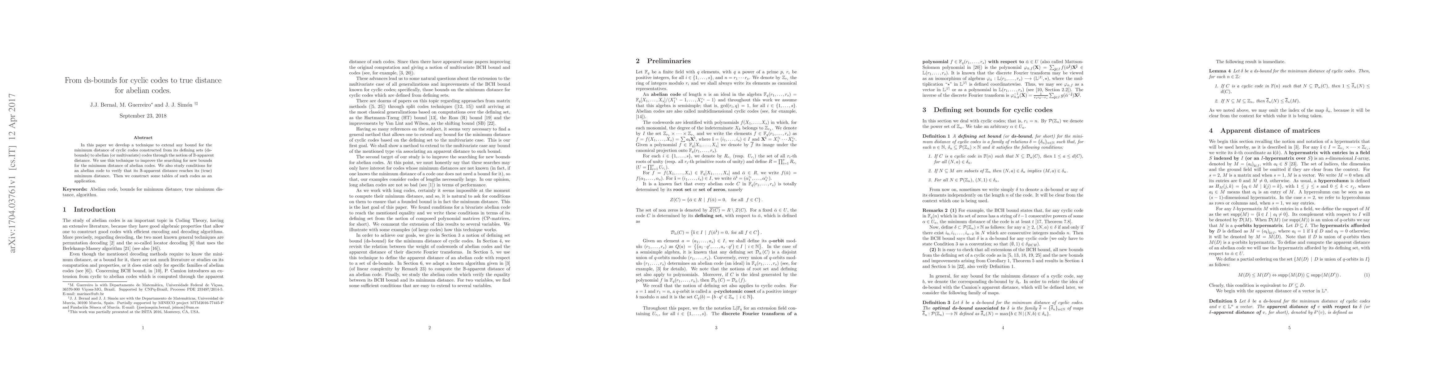 In this paper we develop a technique to extend any bound for the minimum distance of cyclic codes constructed from its defining sets (ds-bounds) to abelian (or multivariate) codes through the notion of $\mathbb{B}$-apparent distance. We use this technique to improve the searching for new bounds for the minimum distance of abelian codes. We also study conditions for an abelian code to verify that its $\mathbb{B}$-apparent distance reaches its (true) minimum distance. Then we construct some tables of such codes as an application