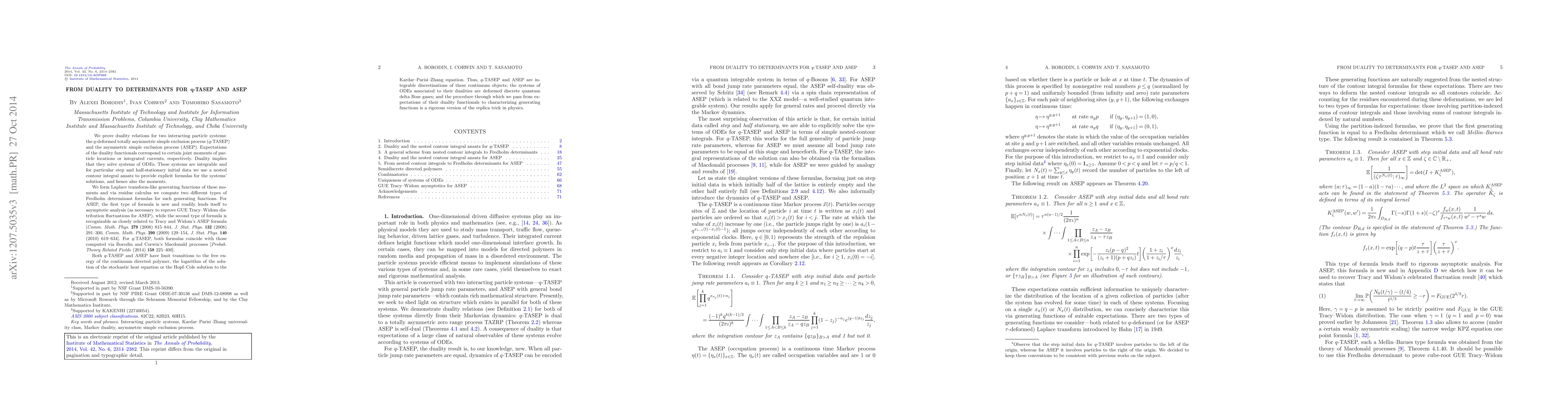 This work provides a rigorous framework for understanding discrete stochastic processes through integrable systems, connecting them to continuum models and offering new analytical tools for studying their asymptotic behavior.