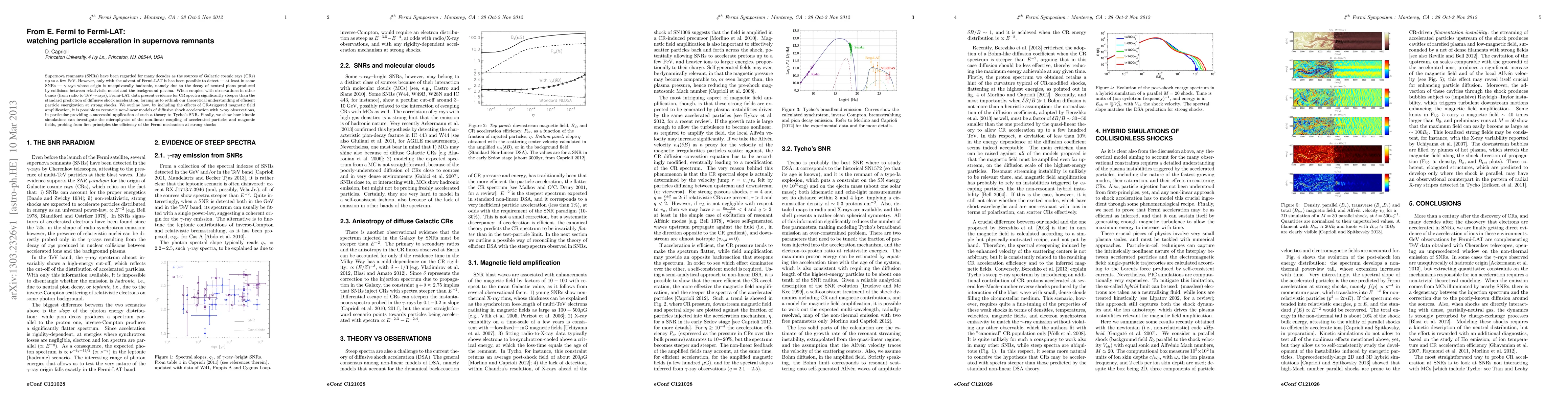 Supernova remnants (SNRs) have been regarded for many decades as the sources of Galactic cosmic rays (CRs) up to a few PeV. However, only with the advent of Fermi-LAT it has been possible to detect - at least in some SNRs - \gamma-rays whose origin is unequivocally hadronic, namely due to the decay of neutral pions produced by collisions between relativistic nuclei and the background plasma. When coupled with observations in other bands (from radio to TeV \gamma-rays), Fermi-LAT data present evidence for CR spectra significantly steeper than the standard prediction of diffusive shock acceleration, forcing us to rethink our theoretical understanding of efficient particle energization at strong shocks. We outline how, by including the effects of CR-triggered magnetic field amplification, it is possible to reconcile non-linear models of diffusive shock acceleration with \gamma-ray observations, in particular providing a successful application of such a theory to Tycho's SNR. Finally, we show how kinetic simulations can investigate the microphysics of the non-linear coupling of accelerated particles and magnetic fields, probing from first principles the efficiency of the Fermi mechanism at strong shocks