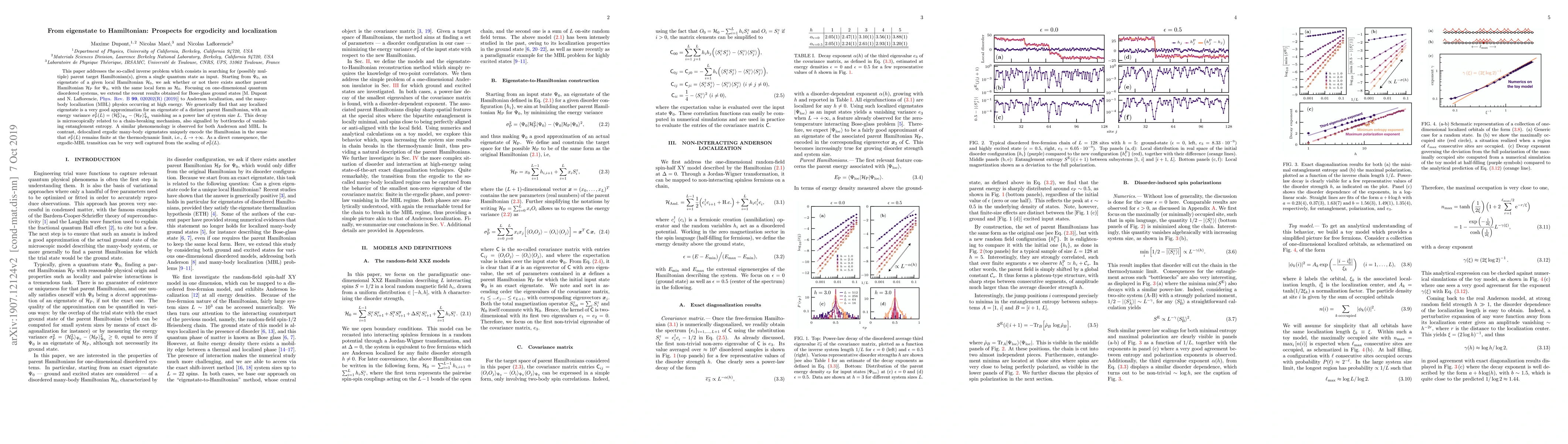 This paper addresses the so-called inverse problem which consists in searching for (possibly multiple) parent target Hamiltonian(s), given a single quantum state as input. Starting from $\Psi_0$, an eigenstate of a given local Hamiltonian $\mathcal{H}_0$, we ask whether or not there exists another parent Hamiltonian $\mathcal{H}_\mathrm{P}$ for $\Psi_0$, with the same local form as $\mathcal{H}_0$. Focusing on one-dimensional quantum disordered systems, we extend the recent results obtained for Bose-glass ground states [M. Dupont and N. Laflorencie, Phys. Rev. B 99, 020202(R) (2019)] to Anderson localization, and the many-body localization (MBL) physics occurring at high energy. We generically find that any localized eigenstate is a very good approximation for an eigenstate of a distinct parent Hamiltonian, with an energy variance $\sigma_\mathrm{P}^2(L)=\langle\mathcal{H}_\mathrm{P}^2\rangle_{\Psi_0}-\langle\mathcal{H}_\mathrm{P}\rangle_{\Psi_0}^2$ vanishing as a power law of system size $L$. This decay is microscopically related to a chain-breaking mechanism, also signalled by bottlenecks of vanishing entanglement entropy. A similar phenomenology is observed for both Anderson and MBL. In contrast, delocalized ergodic many-body eigenstates uniquely encode the Hamiltonian in the sense that $\sigma_\mathrm{P}^2(L)$ remains finite at the thermodynamic limit, i.e., $L\to+\infty$. As a direct consequence, the ergodic-MBL transition can be very well captured from the scaling of $\sigma_\mathrm{P}^2(L)$.