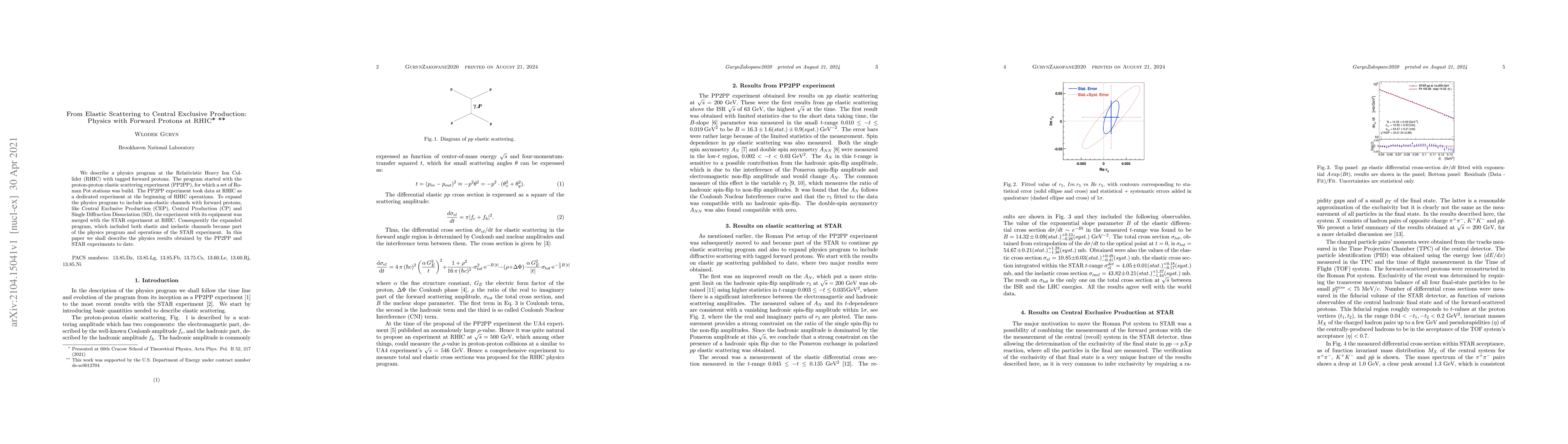 This paper outlines a physics program at RHIC using tagged forward protons, starting with the elastic scattering experiment PP2PP and expanding to include Central Exclusive Production and other non-elastic channels through the STAR experiment. It summarizes the results obtained from both the PP2PP and STAR experiments to date.