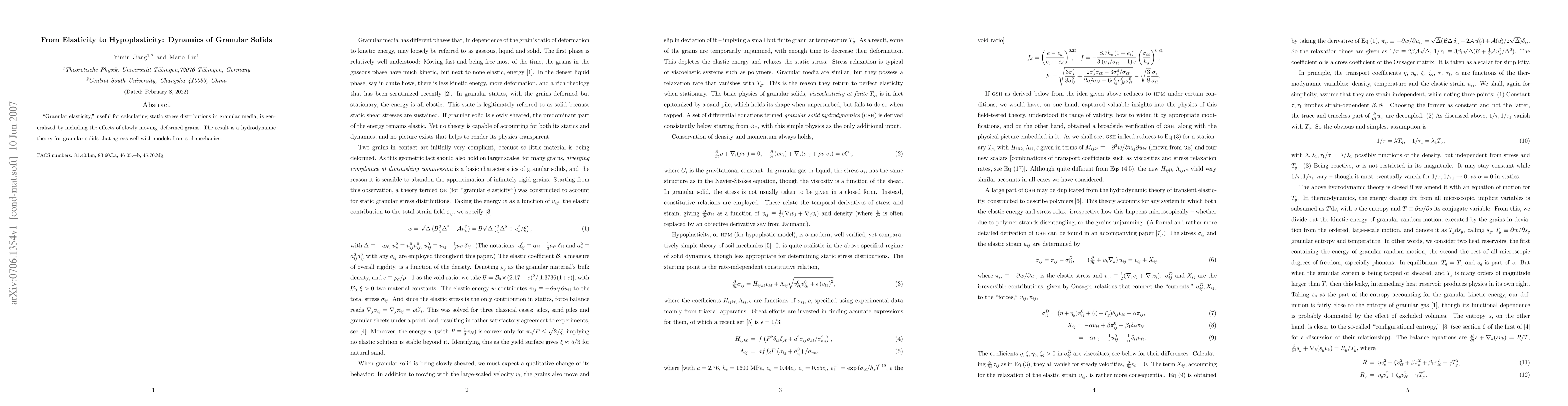 Researchers developed a new theory that combines elasticity with slow movement of grains to accurately predict stress distributions in granular solids, aligning with existing soil mechanics models.
