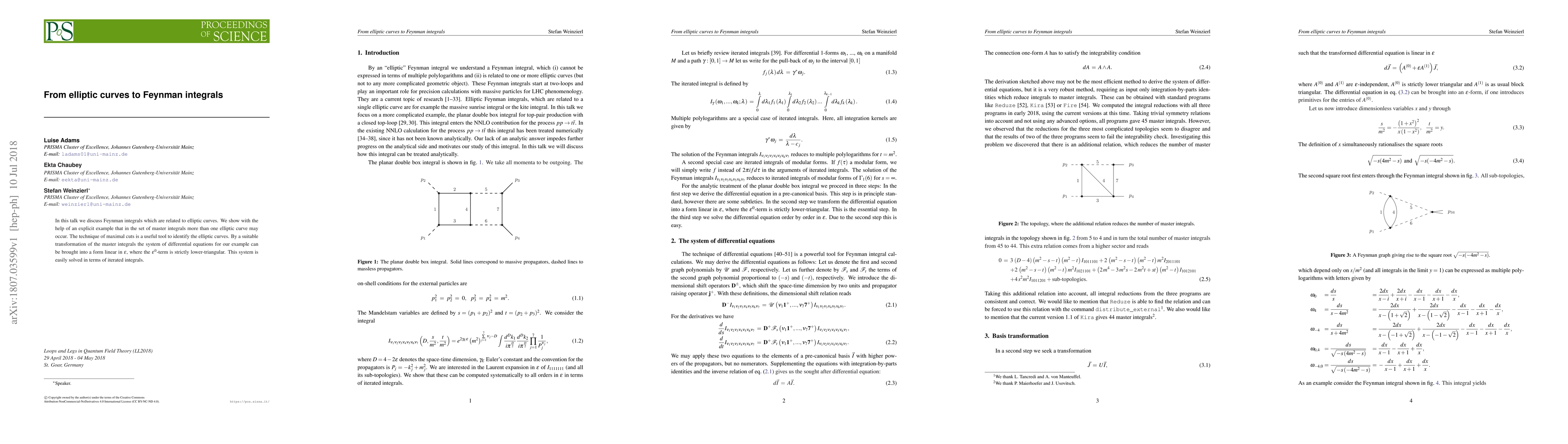 This research demonstrates a connection between Feynman integrals and elliptic curves, showcasing that multiple elliptic curves can emerge in master integrals. The technique of maximal cuts aids in identifying these curves, and a transformation simplifies the system of differential equations into a solvable linear form.