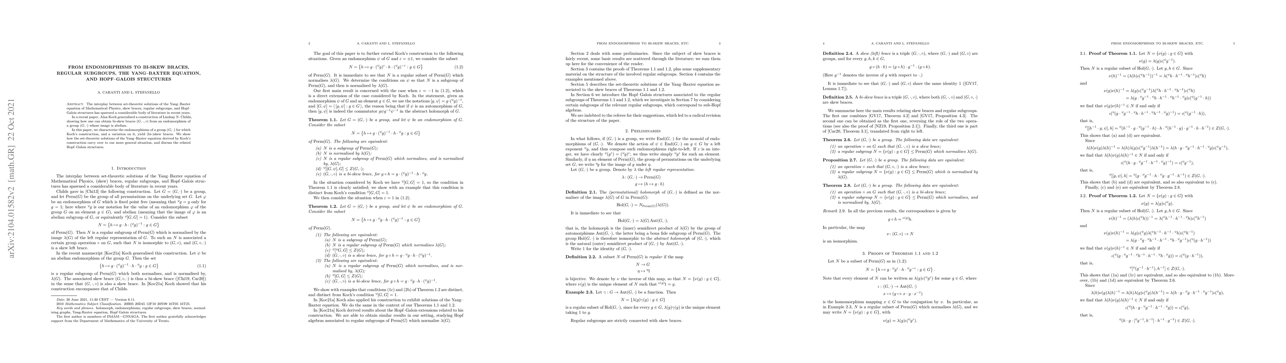 The interplay between set-theoretic solutions of the Yang--Baxter equation of Mathematical Physics, skew braces, regular subgroups, and Hopf--Galois structures has spawned a considerable body of literature in recent years. In a recent paper, Alan Koch generalised a construction of Lindsay N.~Childs, showing how one can obtain bi-skew braces $(G, \cdot, \circ)$ from an endomorphism of a group $(G, \cdot)$ whose image is abelian. In this paper, we characterise the endomorphisms of a group $(G, \cdot)$ for which Koch's construction, and a variation on it, yield (bi-)skew braces. We show how the set-theoretic solutions of the Yang--Baxter equation derived by Koch's construction carry over to our more general situation, and discuss the related Hopf--Galois structures.