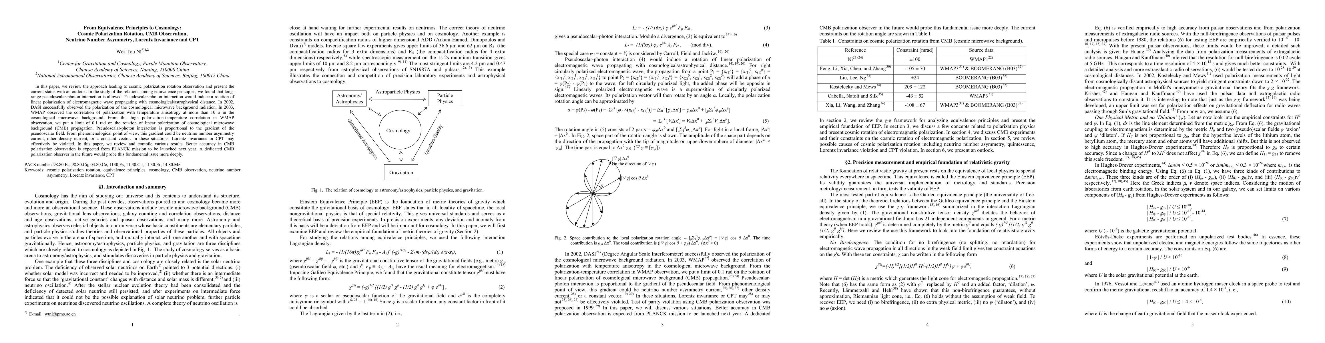 This paper reviews the connection between cosmic polarization rotation and equivalence principles, highlighting pseudoscalar-photon interactions that could induce polarization rotation in electromagnetic waves. It discusses the implications of the DASI and WMAP observations of CMB polarization and sets limits on the rotation angle, suggesting potential violations of Lorentz invariance and CPT linked to neutrino number asymmetry.