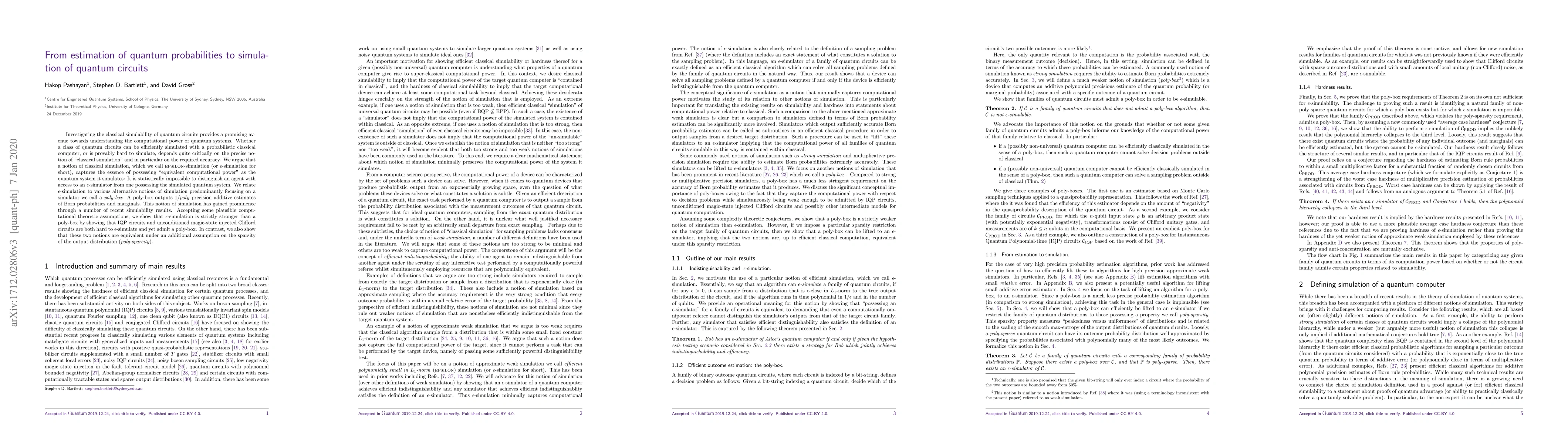 This paper explores the classical simulability of quantum circuits, introducing a concept called epsilon-simulation that claims equivalence in computational power with quantum systems. It demonstrates that epsilon-simulation is stronger than poly-box simulation, showing that certain quantum circuits are hard to simulate with epsilon-simulation but can be poly-box simulated, except under the condition of poly-sparsity in output distribution.