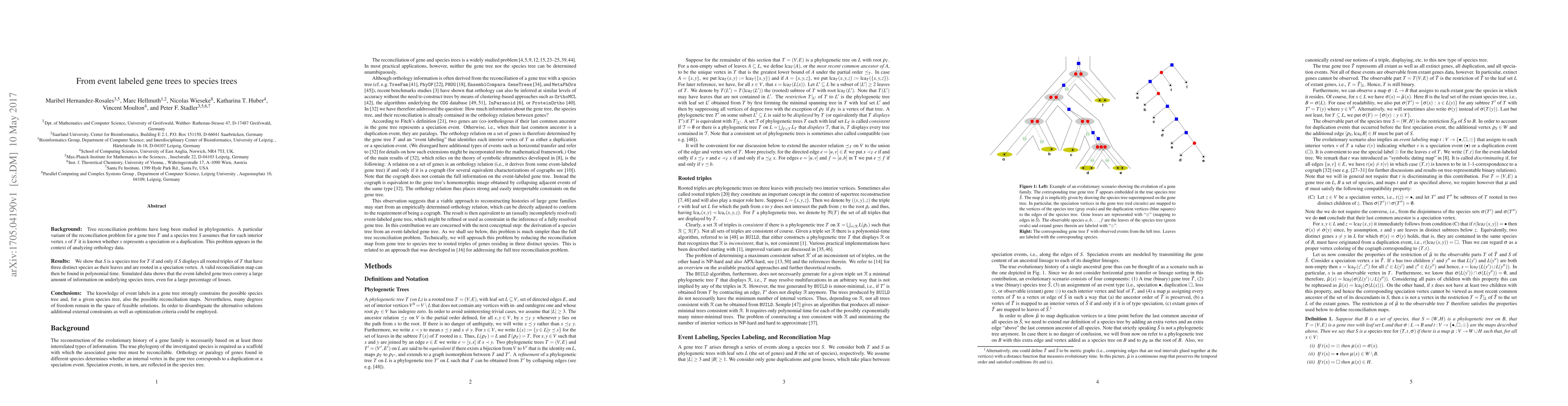The paper introduces a characterization of (T, t) event-labeled gene trees in terms of a set S of triples easily constructed from a subset of T's triples, and demonstrates that this set determines a species tree S uniquely under certain conditions.