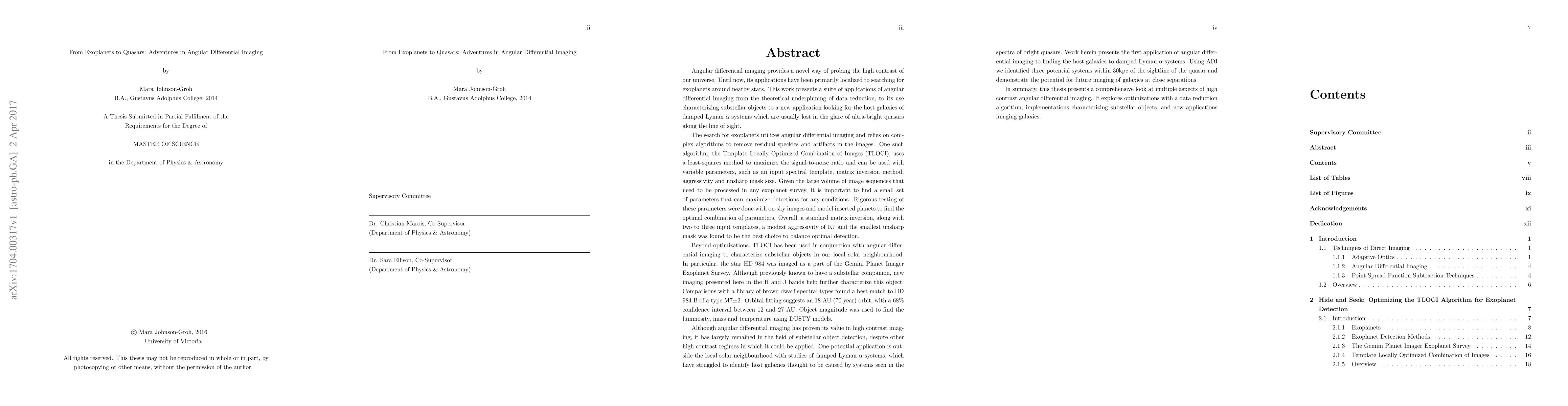 This paper explores the versatile applications of angular differential imaging, initially developed for exoplanet detection, now extending to characterizing substellar objects and identifying host galaxies of damped Lyman α systems obscured by quasars.