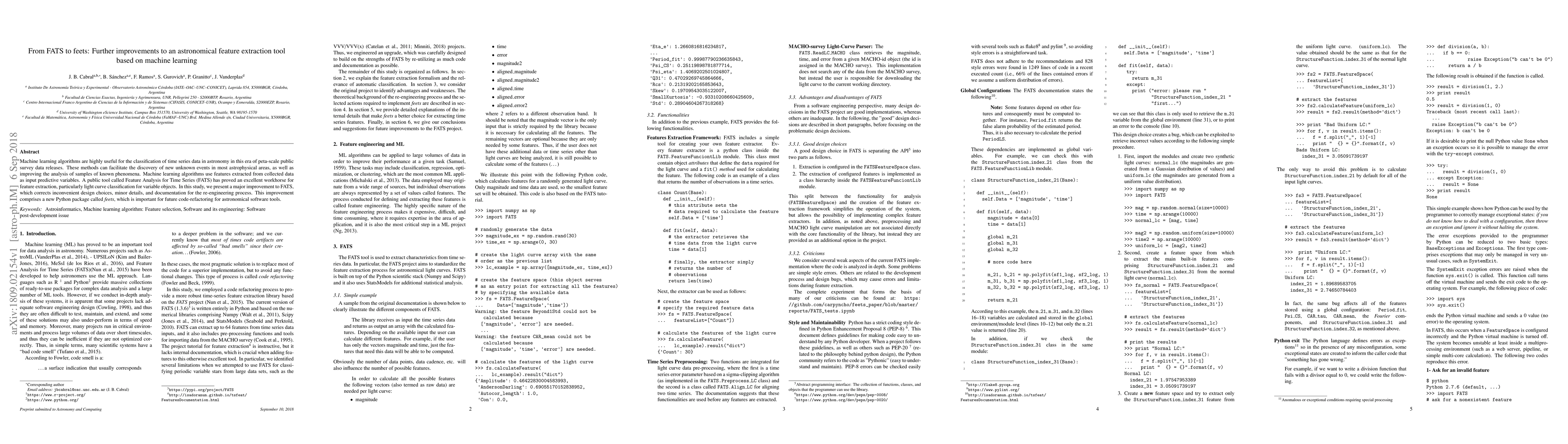 This paper presents significant enhancements to the Feature Analysis for Time Series (FATS) tool, now re-engineered into a new Python package called "feets." The improvements address design flaws and documentation issues, aiming to facilitate better feature extraction and classification of astronomical time series data.
