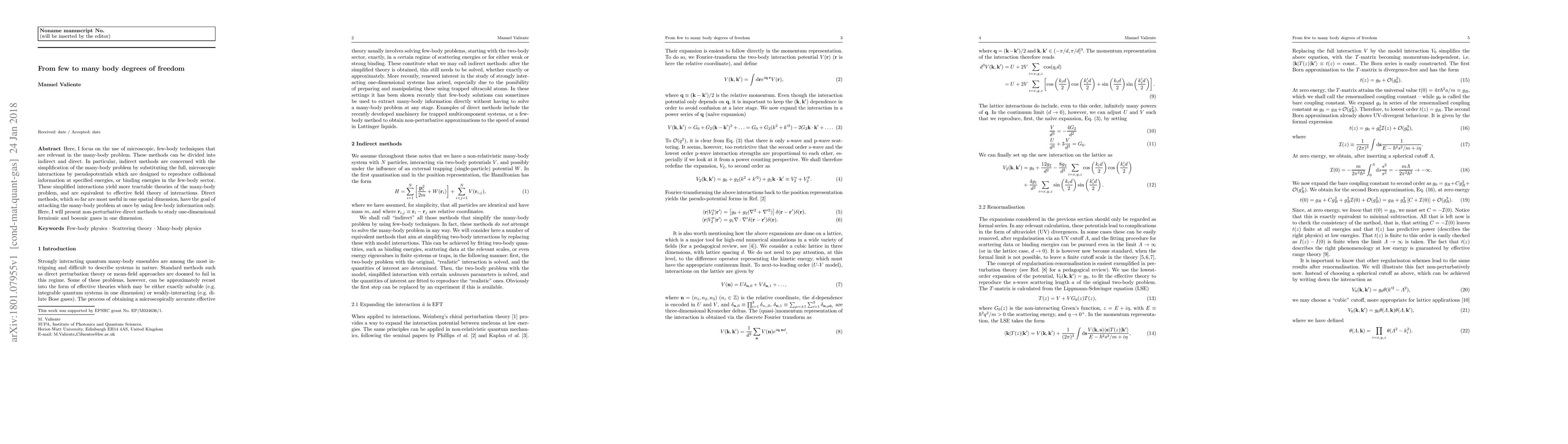Researchers present non-perturbative direct methods to study one-dimensional fermionic and bosonic gases in one dimension, aiming to simplify the many-body problem using few-body techniques.