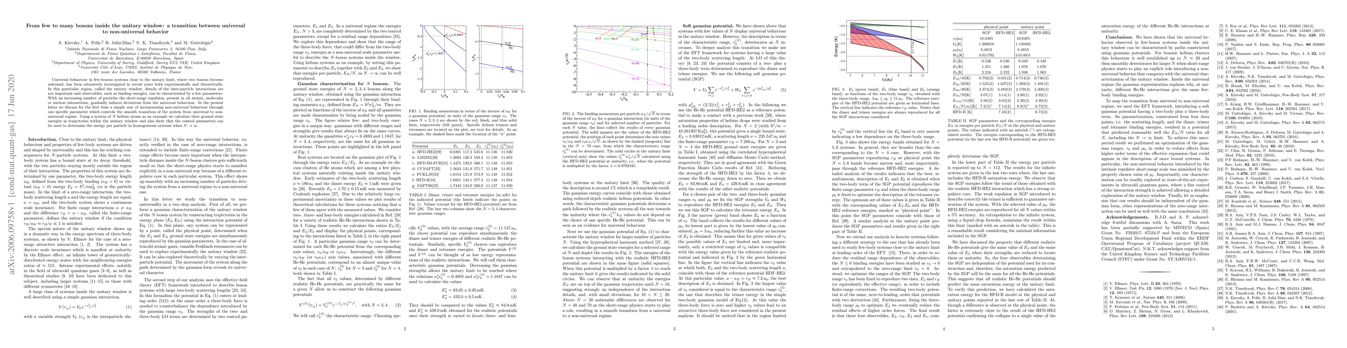 This research introduces a method to transition from universal to non-universal behavior in few-boson systems near the unitary limit, using a single control parameter. It demonstrates this with ground state energy calculations for N helium atoms, showing the approach's effectiveness as N increases.