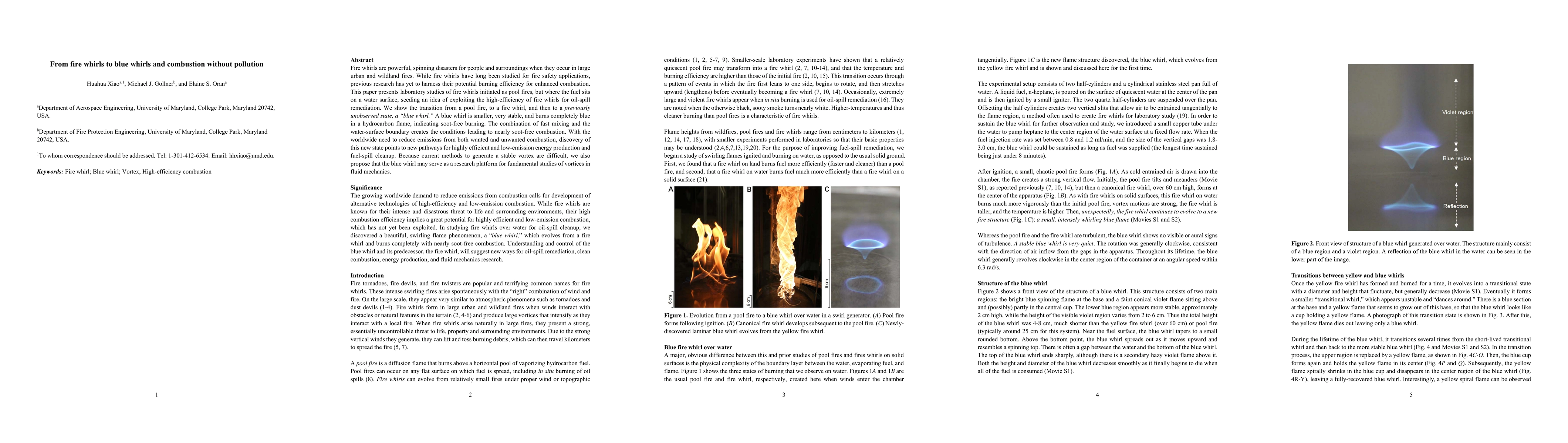 This paper investigates the transformation from fire whirls to blue whirls, demonstrating highly efficient, soot-free combustion over a water surface, suggesting new pathways for low-emission energy production and oil-spill remediation. The blue whirl’s stability and complete burning indicate a significant advancement in combustion technology.