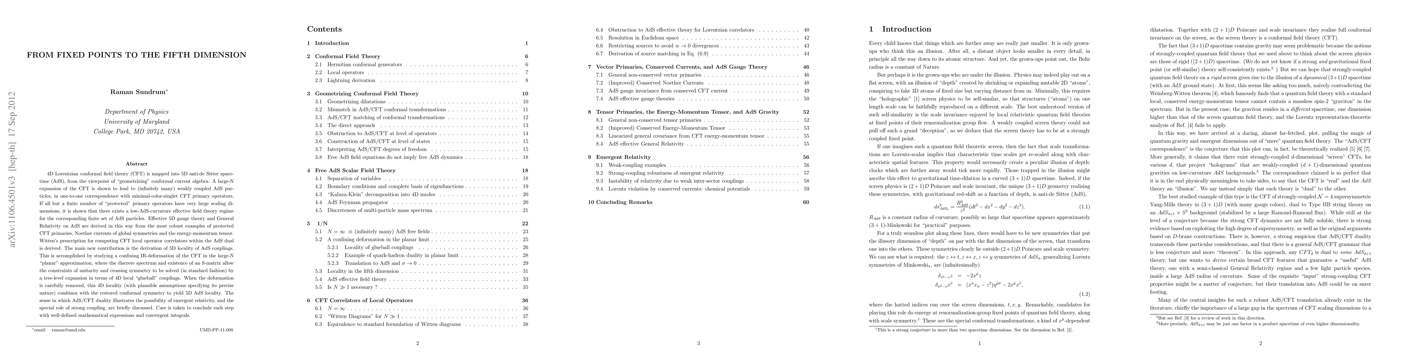 4D Lorentzian conformal field theory (CFT) is mapped into 5D anti-de Sitter spacetime (AdS), from the viewpoint of "geometrizing" conformal current algebra. A large-N expansion of the CFT is shown to lead to (infinitely many) weakly coupled AdS particles, in one-to-one correspondence with minimal-color-singlet CFT primary operators. If all but a finite number of "protected" primary operators have very large scaling dimensions, it is shown that there exists a low-AdS-curvature effective field theory regime for the corresponding finite set of AdS particles. Effective 5D gauge theory and General Relativity on AdS are derived in this way from the most robust examples of protected CFT primaries, Noether currents of global symmetries and the energy-momentum tensor. Witten's prescription for computing CFT local operator correlators within the AdS dual is derived. The main new contribution is the derivation of 5D locality of AdS couplings. This is accomplished by studying a confining IR-deformation of the CFT in the large-N "planar" approximation, where the discrete spectrum and existence of an S-matrix allow the constraints of unitarity and crossing symmetry to be solved (in standard fashion) by a tree-level expansion in terms of 4D local "glueball" couplings. When the deformation is carefully removed, this 4D locality (with plausible technical assumptions specifying its precise nature) combines with the restored conformal symmetry to yield 5D AdS locality. The sense in which AdS/CFT duality illustrates the possibility of emergent relativity, and the special role of strong coupling, are briefly discussed. Care is taken to conclude each step with well-defined mathematical expressions and convergent integrals.