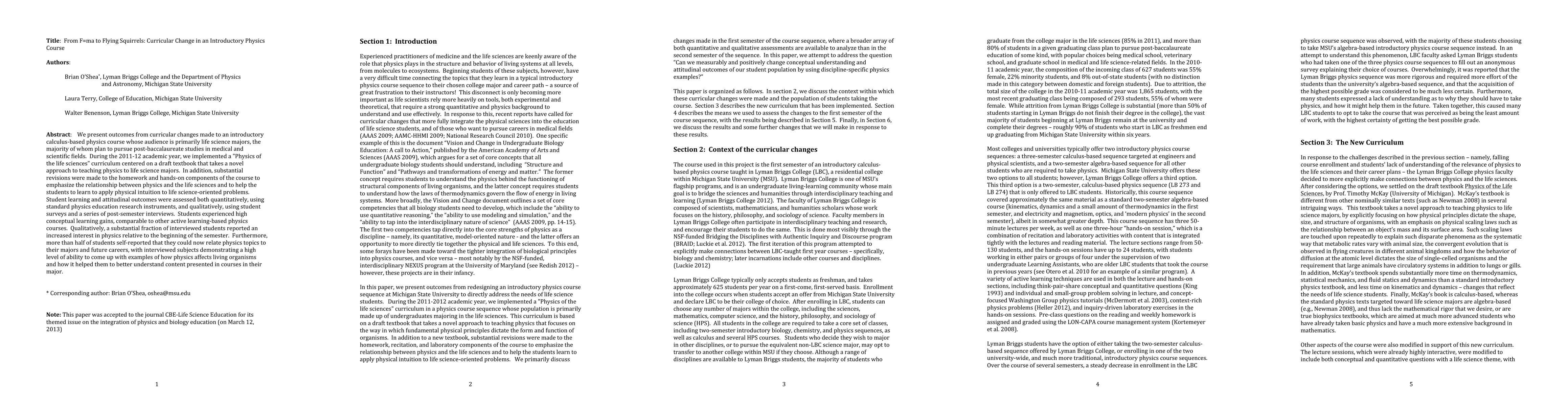 This research details curricular changes in an introductory physics course for life science majors, focusing on integrating physics with life sciences. The revised curriculum showed significant conceptual learning gains and increased students' interest in physics, with many reporting a better ability to relate physics to their majors and future careers.