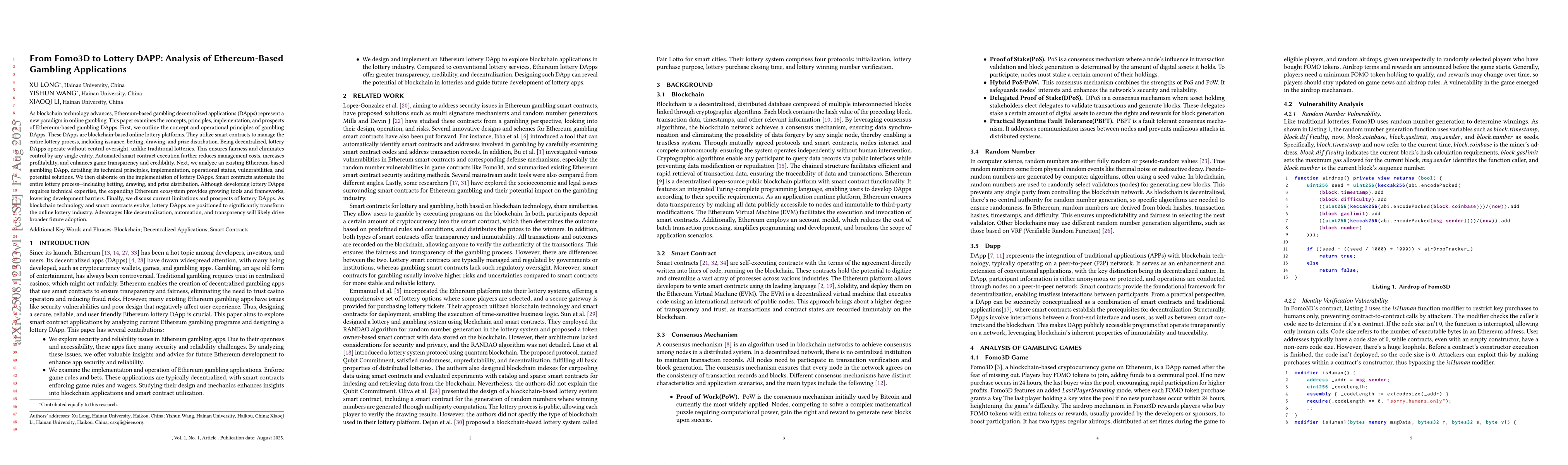 As blockchain technology advances, Ethereum based gambling decentralized applications (DApps) represent a new paradigm in online gambling. This paper examines the concepts, principles, implementation, and prospects of Ethereum based gambling DApps. First, we outline the concept and operational principles of gambling DApps. These DApps are blockchain based online lottery platforms. They utilize smart contracts to manage the entire lottery process, including issuance, betting, drawing, and prize distribution. Being decentralized, lottery DApps operate without central oversight, unlike traditional lotteries. This ensures fairness and eliminates control by any single entity. Automated smart contract execution further reduces management costs, increases profitability, and enhances game transparency and credibility. Next, we analyze an existing Ethereum based gambling DApp, detailing its technical principles, implementation, operational status, vulnerabilities, and potential solutions. We then elaborate on the implementation of lottery DApps. Smart contracts automate the entire lottery process including betting, drawing, and prize distribution. Although developing lottery DApps requires technical expertise, the expanding Ethereum ecosystem provides growing tools and frameworks, lowering development barriers. Finally, we discuss current limitations and prospects of lottery DApps. As blockchain technology and smart contracts evolve, lottery DApps are positioned to significantly transform the online lottery industry. Advantages like decentralization, automation, and transparency will likely drive broader future adoption.