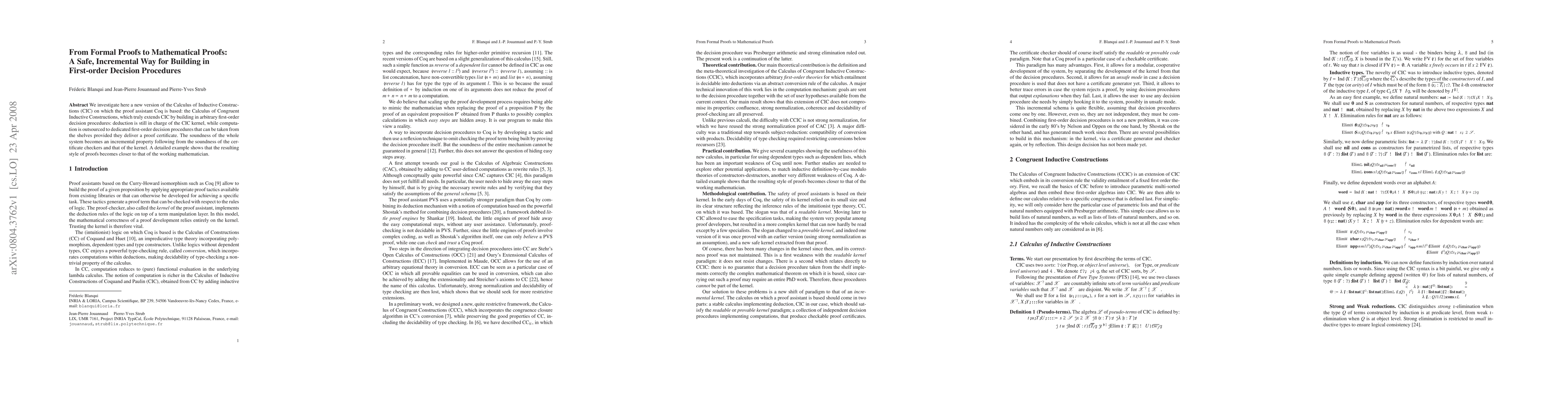 Researchers developed a new proof system that combines formal proofs with first-order decision procedures, allowing for safer and more incremental development of mathematical theories. This innovation makes the process closer to how working mathematicians approach problems.