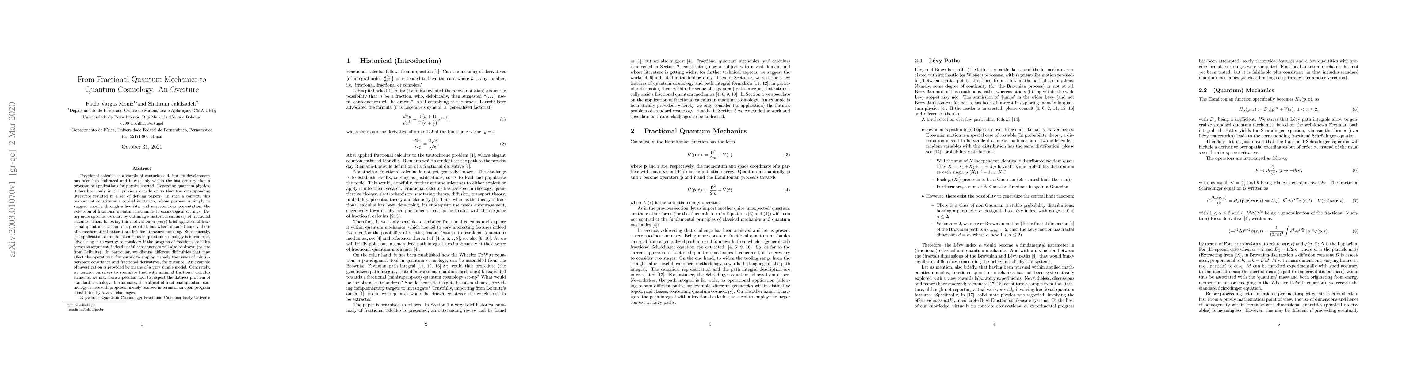 This paper invites readers to explore the potential of fractional quantum mechanics in cosmological settings, providing a historical overview of fractional calculus and a brief introduction to fractional quantum mechanics. It suggests that fractional quantum cosmology could offer new insights, particularly in addressing the flatness problem, and outlines several challenges in its operational framework.