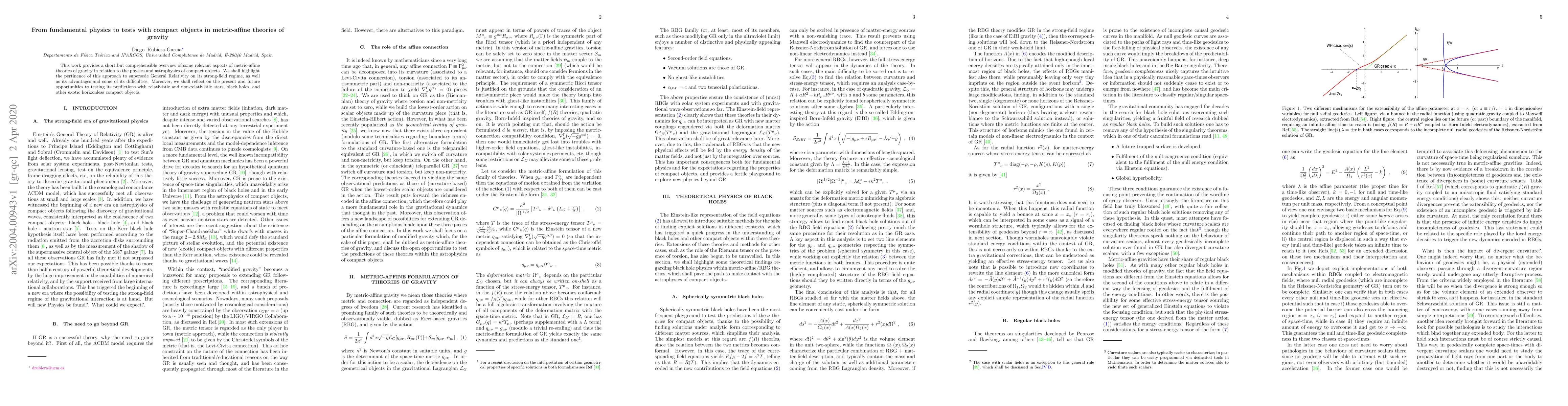 This work provides a short but comprehensible overview of some relevant aspects of metric-affine theories of gravity in relation to the physics and astrophysics of compact objects. We shall highlight the pertinence of this approach to supersede General Relativity on its strong-field regime, as well as its advantages and some of its difficulties. Moreover, we shall reflect on the present and future opportunities to testing its predictions with relativistic and non-relativistic stars, black holes, and other exotic horizonless compact objects.