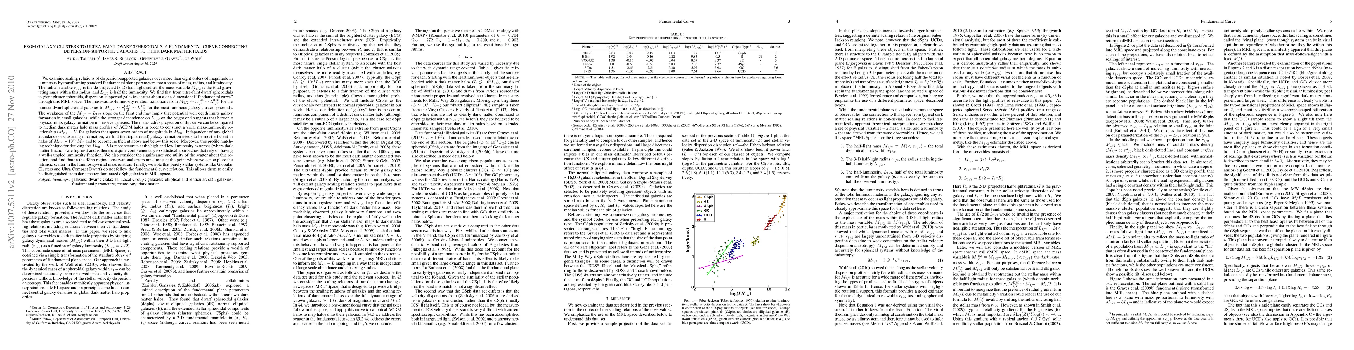We examine scaling relations of dispersion-supported galaxies over more than eight orders of magnitude in luminosity by transforming standard fundamental plane parameters into a space of mass (M1/2), radius (r1/2), and luminosity (L1/2). We find that from ultra-faint dwarf spheroidals to giant cluster spheroids, dispersion-supported galaxies scatter about a one-dimensional "fundamental curve" through this MRL space. The weakness of the M1/2-L1/2 slope on the faint end may imply that potential well depth limits galaxy formation in small galaxies, while the stronger dependence on L1/2 on the bright end suggests that baryonic physics limits galaxy formation in massive galaxies. The mass-radius projection of this curve can be compared to median dark matter halo mass profiles of LCDM halos in order to construct a virial mass-luminosity relationship (Mvir-L) for galaxies that spans seven orders of magnitude in Mvir. Independent of any global abundance or clustering information, we find that (spheroidal) galaxy formation needs to be most efficient in halos of Mvir ~ 10^12 Msun and to become inefficient above and below this scale. Moreover, this profile matching technique is most accurate at the high and low luminosity extremes (where dark matter fractions are highest) and is therefore quite complementary to statistical approaches that rely on having a well-sampled luminosity function. We also consider the significance and utility of the scatter about this relation, and find that in the dSph regime observational errors are almost at the point where we can explore the intrinsic scatter in the luminosity-virial mass relation. Finally, we note that purely stellar systems like Globular Clusters and Ultra Compact Dwarfs do not follow the fundamental curve relation. This allows them to be easily distinguished from dark-matter dominated dSph galaxies in MRL space. (abridged)
