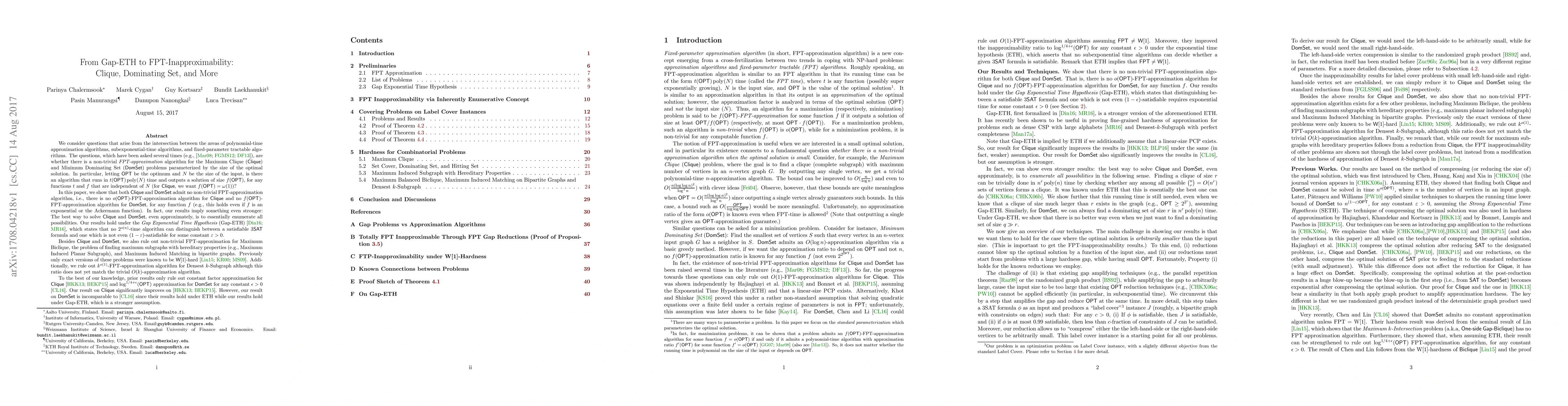 We consider questions that arise from the intersection between the areas of polynomial-time approximation algorithms, subexponential-time algorithms, and fixed-parameter tractable algorithms. The questions, which have been asked several times (e.g., [Marx08, FGMS12, DF13]), are whether there is a non-trivial FPT-approximation algorithm for the Maximum Clique (Clique) and Minimum Dominating Set (DomSet) problems parameterized by the size of the optimal solution. In particular, letting $\text{OPT}$ be the optimum and $N$ be the size of the input, is there an algorithm that runs in $t(\text{OPT})\text{poly}(N)$ time and outputs a solution of size $f(\text{OPT})$, for any functions $t$ and $f$ that are independent of $N$ (for Clique, we want $f(\text{OPT})=\omega(1)$)? In this paper, we show that both Clique and DomSet admit no non-trivial FPT-approximation algorithm, i.e., there is no $o(\text{OPT})$-FPT-approximation algorithm for Clique and no $f(\text{OPT})$-FPT-approximation algorithm for DomSet, for any function $f$ (e.g., this holds even if $f$ is the Ackermann function). In fact, our results imply something even stronger: The best way to solve Clique and DomSet, even approximately, is to essentially enumerate all possibilities. Our results hold under the Gap Exponential Time Hypothesis (Gap-ETH) [Dinur16, MR16], which states that no $2^{o(n)}$-time algorithm can distinguish between a satisfiable 3SAT formula and one which is not even $(1 - \epsilon)$-satisfiable for some constant $\epsilon > 0$. Besides Clique and DomSet, we also rule out non-trivial FPT-approximation for Maximum Balanced Biclique, Maximum Subgraphs with Hereditary Properties, and Maximum Induced Matching in bipartite graphs. Additionally, we rule out $k^{o(1)}$-FPT-approximation algorithm for Densest $k$-Subgraph although this ratio does not yet match the trivial $O(k)$-approximation algorithm.