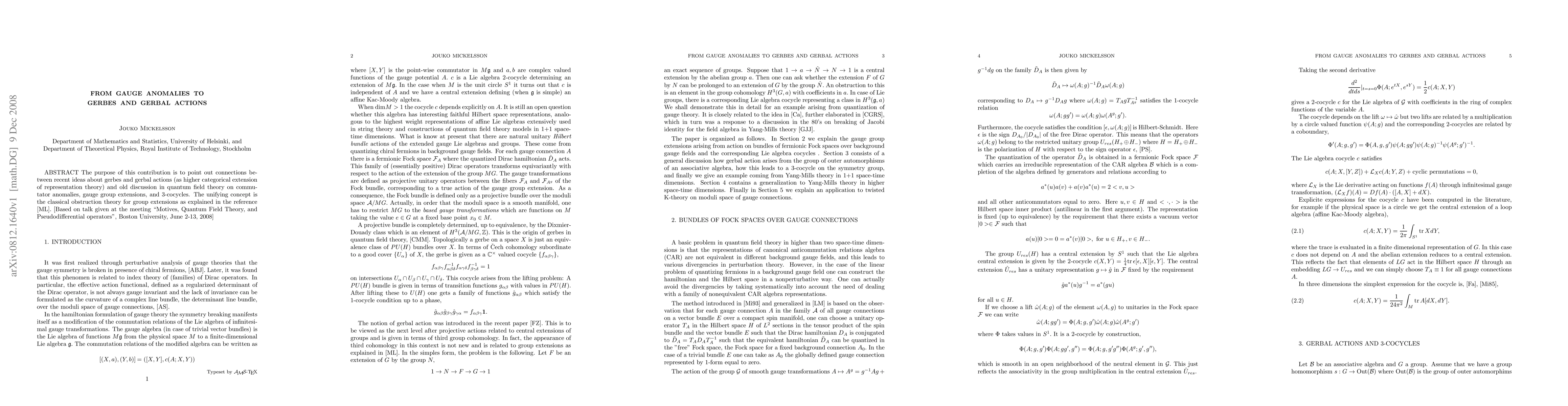 The purpose of this contribution is to point out connections between recent ideas about gerbes and gerbal actions (as higher categorical extension of representation theory) and old discussion in quantum field theory on commutator anomalies, gauge group extensions, and 3-cocycles. The unifying concept is the classical obstruction theory for group extensions as explained in the reference [ML].