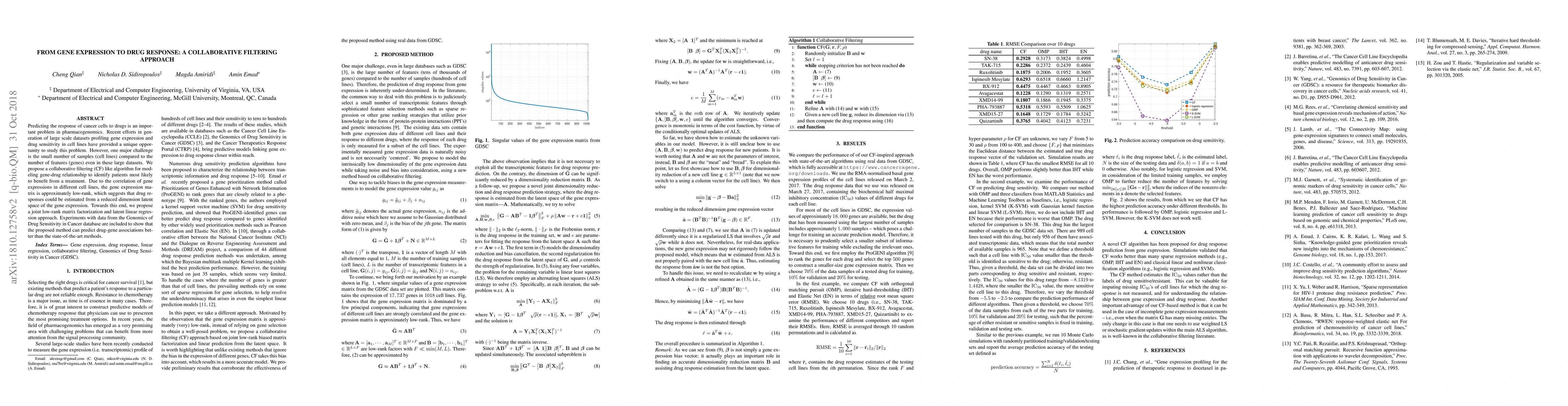 This paper proposes a collaborative filtering-like algorithm to predict cancer cell responses to drugs using gene expression data. The method employs joint low-rank matrix factorization and latent linear regression to model gene-drug relationships, demonstrating superior performance in predicting drug-gene associations compared to existing approaches.