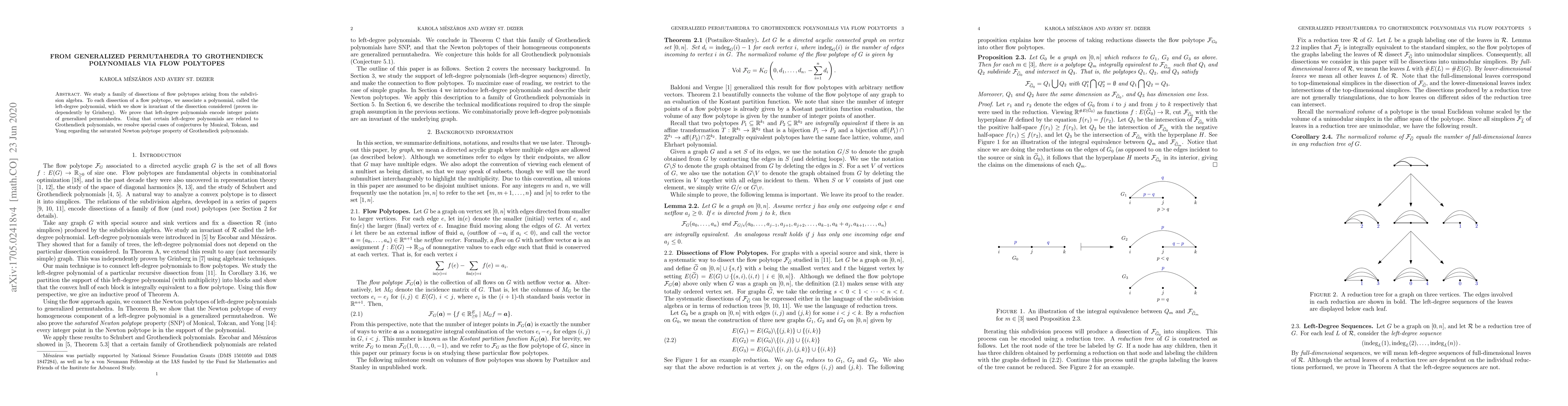We study a family of dissections of flow polytopes arising from the subdivision algebra. To each dissection of a flow polytope, we associate a polynomial, called the left-degree polynomial, which we show is invariant of the dissection considered (proven independently by Grinberg). We prove that left-degree polynomials encode integer points of generalized permutahedra. Using that certain left-degree polynomials are related to Grothendieck polynomials, we resolve special cases of conjectures by Monical, Tokcan, and Yong regarding the saturated Newton polytope property of Grothendieck polynomials.
