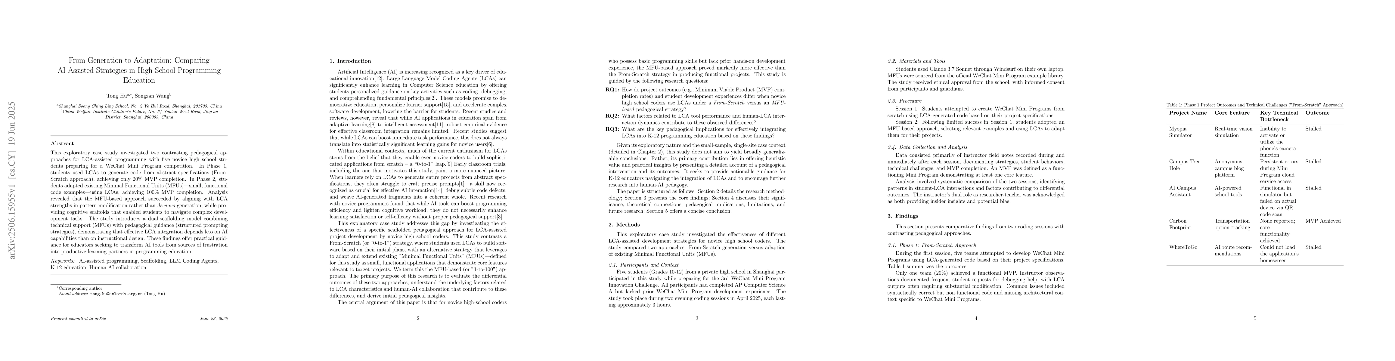 This exploratory case study investigated two contrasting pedagogical approaches for LCA-assisted programming with five novice high school students preparing for a WeChat Mini Program competition. In Phase 1, students used LCAs to generate code from abstract specifications (From-Scratch approach), achieving only 20% MVP completion. In Phase 2, students adapted existing Minimal Functional Units (MFUs), small, functional code examples, using LCAs, achieving 100% MVP completion. Analysis revealed that the MFU-based approach succeeded by aligning with LCA strengths in pattern modification rather than de novo generation, while providing cognitive scaffolds that enabled students to navigate complex development tasks. The study introduces a dual-scaffolding model combining technical support (MFUs) with pedagogical guidance (structured prompting strategies), demonstrating that effective LCA integration depends less on AI capabilities than on instructional design. These findings offer practical guidance for educators seeking to transform AI tools from sources of frustration into productive learning partners in programming education.