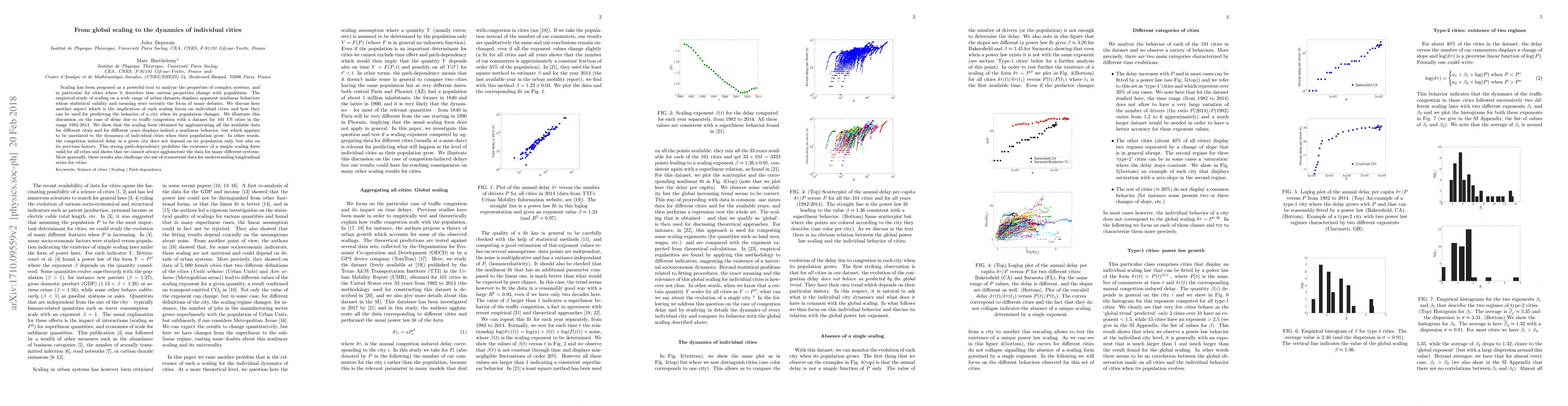 Scaling has been proposed as a powerful tool to analyze the properties of complex systems, and in particular for cities where it describes how various properties change with population. The empirical study of scaling on a wide range of urban datasets displays apparent nonlinear behaviors whose statistical validity and meaning were recently the focus of many debates. We discuss here another aspect which is the implication of such scaling forms on individual cities and how they can be used for predicting the behavior of a city when its population changes. We illustrate this discussion on the case of delay due to traffic congestion with a dataset for 101 US cities in the range 1982-2014. We show that the scaling form obtained by agglomerating all the available data for different cities and for different years displays indeed a nonlinear behavior, but which appears to be unrelated to the dynamics of individual cities when their population grow. In other words, the congestion induced delay in a given city does not depend on its population only, but also on its previous history. This strong path-dependency prohibits the existence of a simple scaling form valid for all cities and shows that we cannot always agglomerate the data for many different systems. More generally, these results also challenge the use of transversal data for understanding longitudinal series for cities.