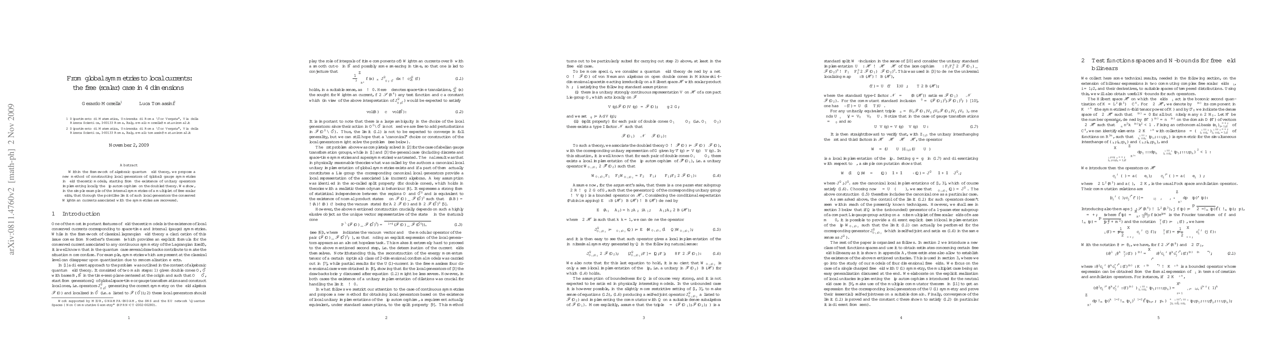 This paper proposes a novel method in algebraic quantum field theory to construct local generators of global gauge symmetries from unitary operators implementing local automorphisms. It demonstrates the method in the context of free scalar fields, showing that conserved Wightman currents emerge from the pointlike limit of these local generators.