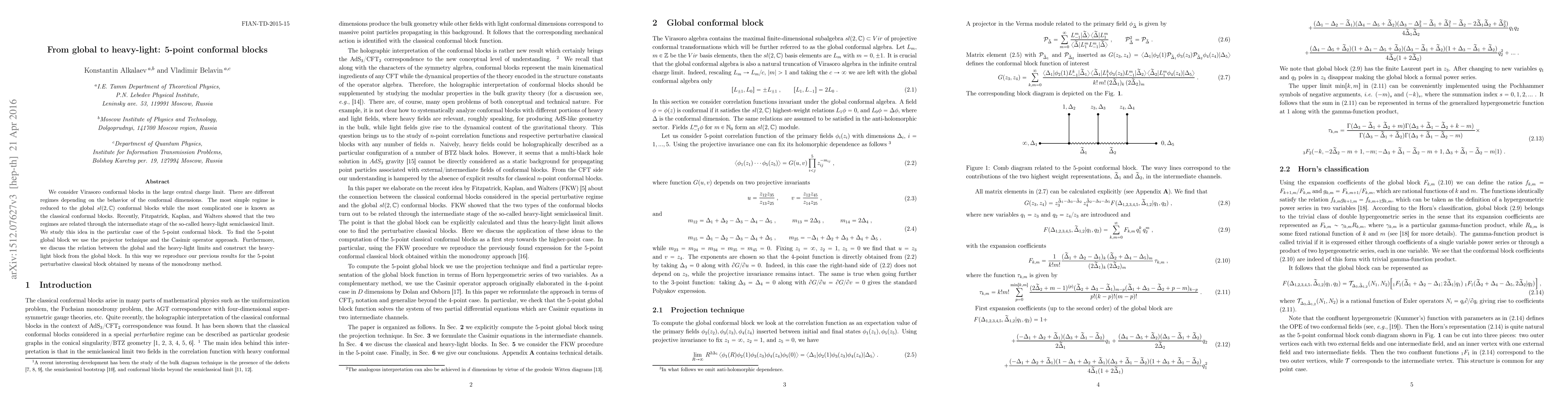 This paper explores the relationship between global and heavy-light semiclassical limits in Virasoro conformal blocks, focusing on the 5-point case. It uses the projector technique and Casimir operator approach to derive the 5-point global block and constructs the heavy-light block from it, confirming previous results for the perturbative classical block.