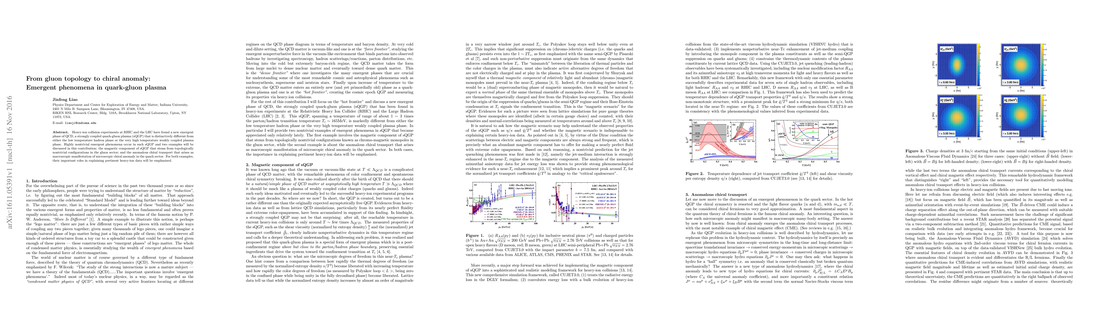 Heavy-ion collision experiments at RHIC and the LHC have found a new emergent phase of QCD, a strongly coupled quark-gluon plasma (sQGP) that is distinctively different from either the low temperature hadron phase or the very high temperature weakly coupled plasma phase. Highly nontrivial emergent phenomena occur in such sQGP and two examples will be discussed in this contribution: the magnetic component of sQGP that stems from topologically nontrivial configurations in the gluon sector; and the anomalous chiral transport that arises as macroscopic manifestation of microscopic chiral anomaly in the quark sector. For both examples, their important roles in explaining pertinent heavy-ion data will be emphasized.