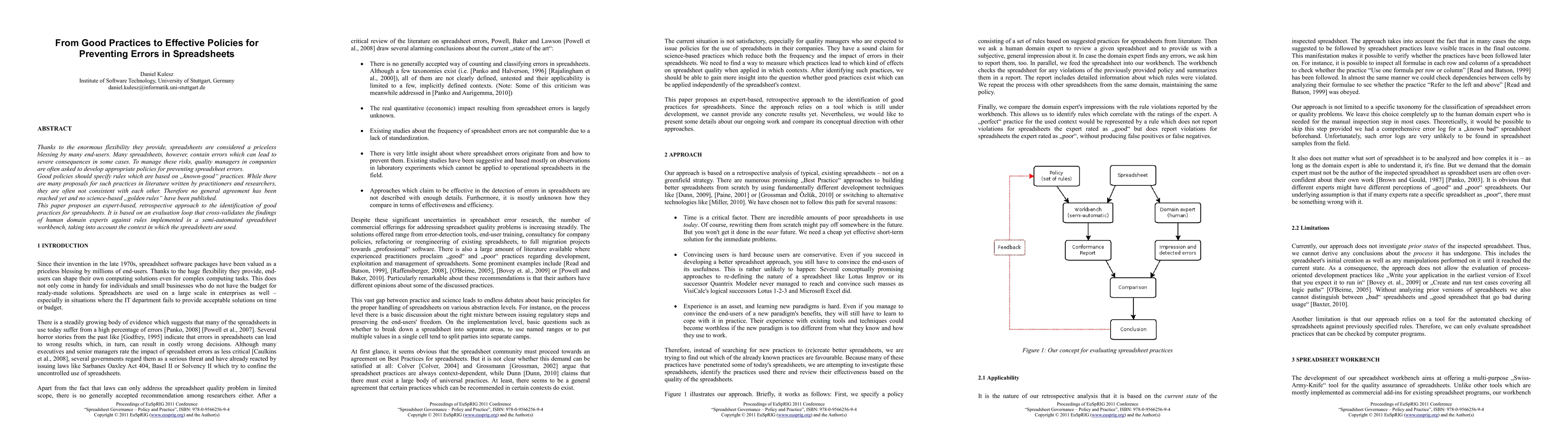 The paper proposes an expert-based, retrospective approach to identify good spreadsheet practices using a semi-automated workbench that cross-validates human domain expert impressions with rule violations.