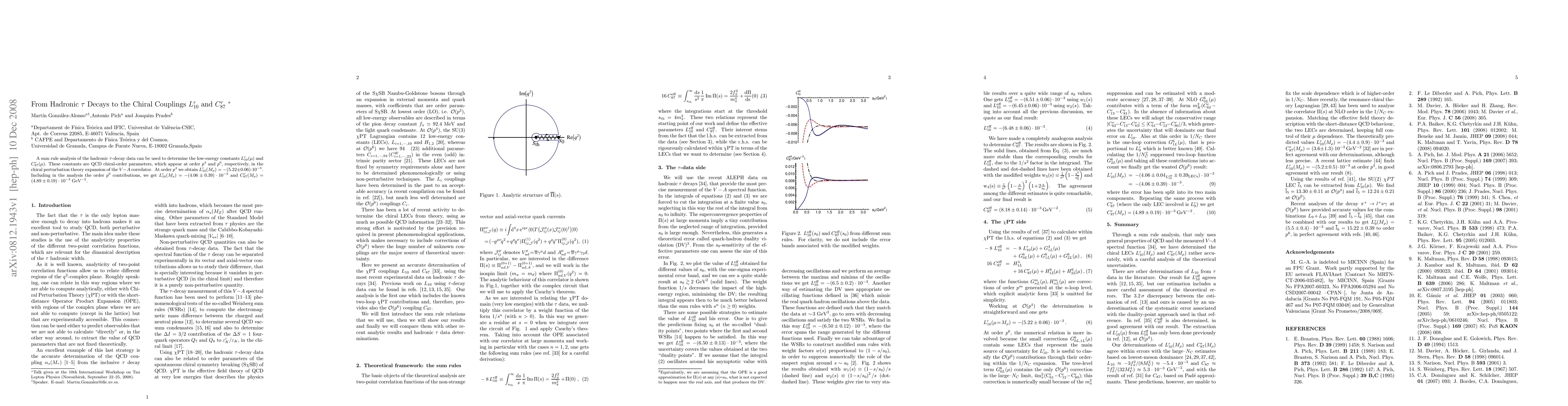 A sum rule analysis of the hadronic tau-decay data can be used to determine the low-energy constants L10(mu) and C87(mu). These constants are QCD chiral-order parameters, which appear at order p^4 and p^6, respectively, in the chiral perturbation theory expansion of the V-A correlator. At order p^4 we obtain L10(M_rho) = -(5.22\pm 0.06)10^-3. Including in the analysis the order p^6 contributions, we get L10(M_rho) = -(4.06\pm 0.39)10^-3 and C87(M_rho) = (4.89\pm 0.19)10^-3 GeV^-2.