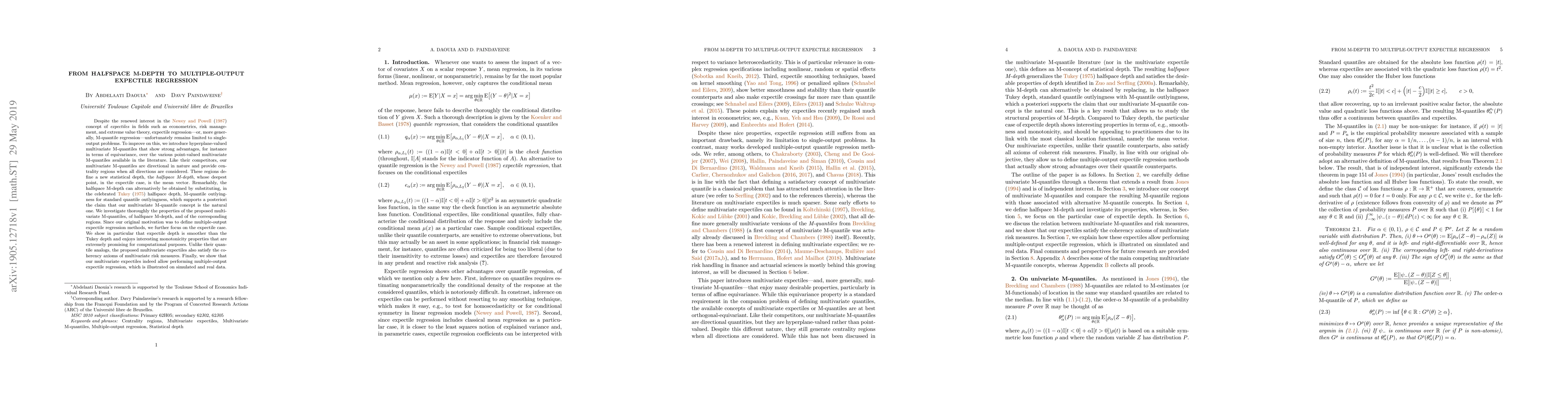 This paper introduces hyperplane-valued multivariate M-quantiles to extend expectile regression to multiple outputs, proposing a new statistical depth called halfspace M-depth. It demonstrates the advantages of these multivariate M-quantiles, including equivariance and computational benefits, and shows their application in multiple-output expectile regression through simulations and real data analysis.